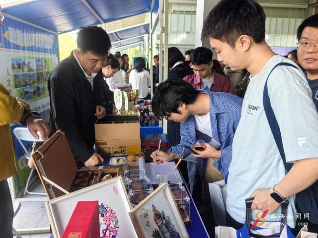 宣介现场,晋源区展位前人头攒动、气氛热烈。晋源剪纸、黑釉陶器、沥粉贴金、葫芦雕刻等多项非物质文化遗产代表性作品集中亮相,展现了当地深厚的文化底蕴,让深圳高校学子直观感受“唐风晋韵・山水晋源”的独特魅力。