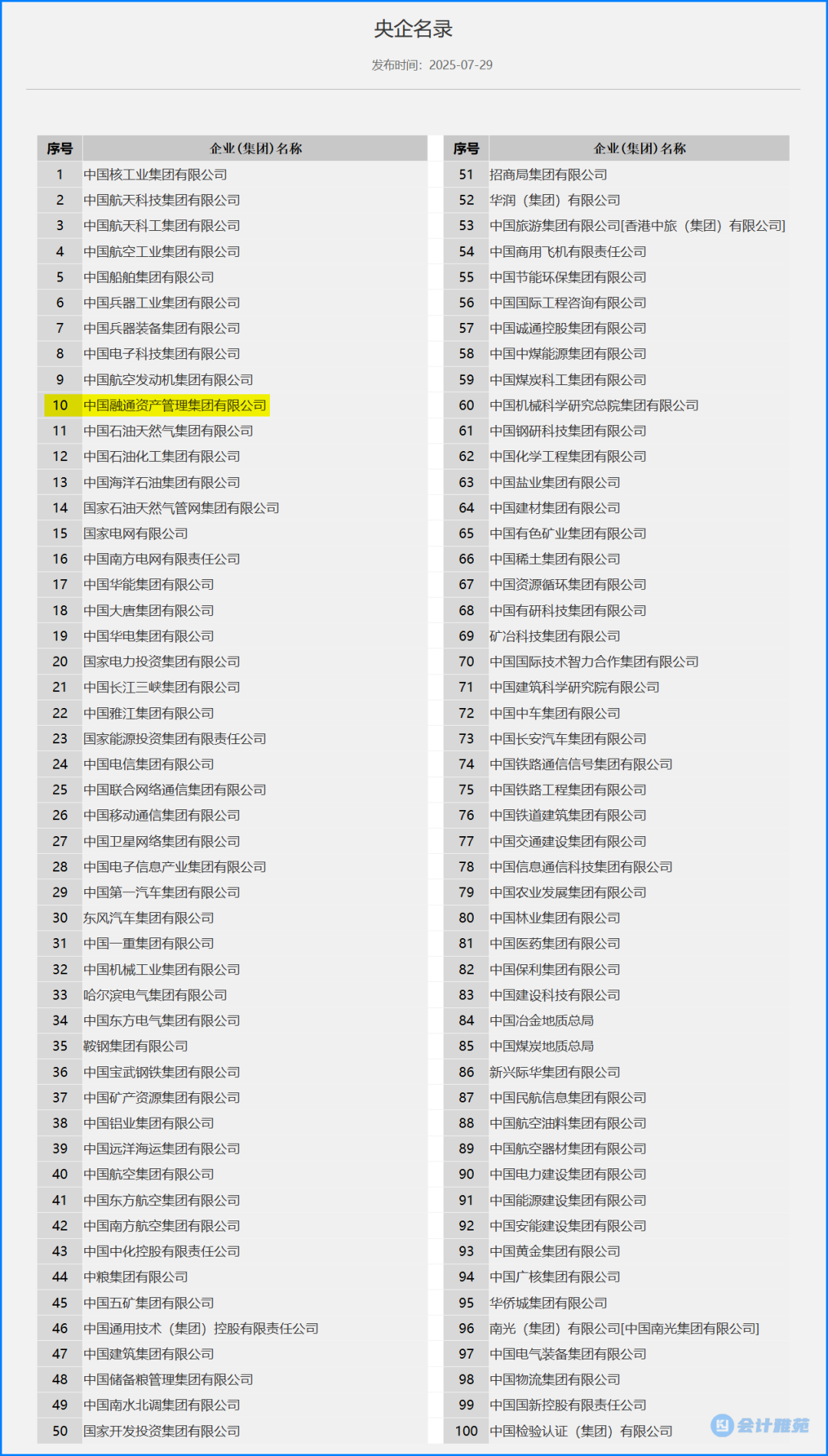 中国融通资产管理集团有限公司2025年-2027年财务决算会计师事务所遴选项目标段1中标候选人公示