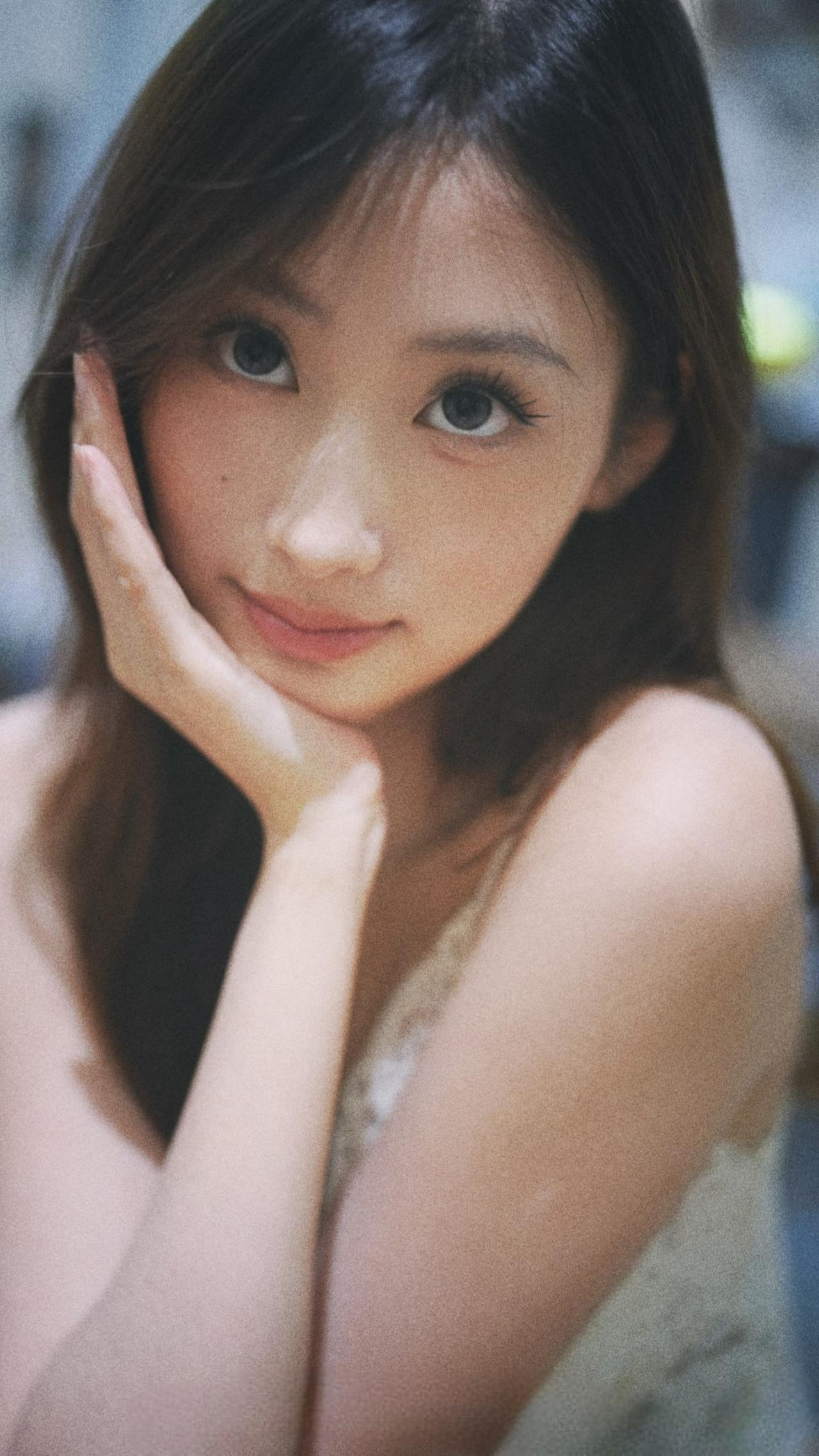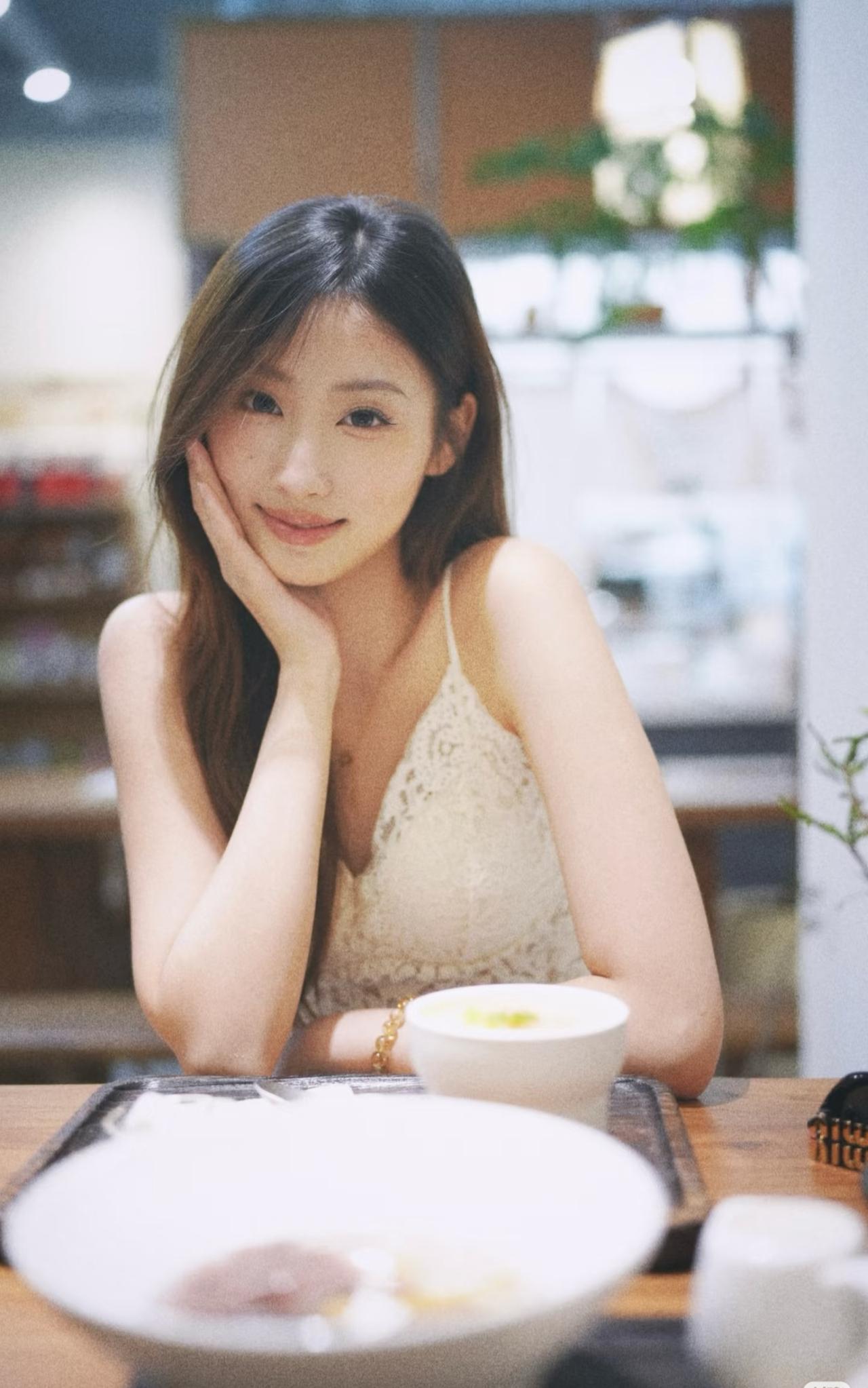古典美人,红衣粉领,花饰点缀,宛如画中仙子。