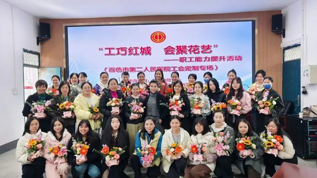 为丰富职工文化生活,提升职工审美素养与生活品味,11月28日上午,由百色市总工会主办、百色市第二人民医院工会、中国建设银行百色向阳分行协办的“工巧红城会聚花艺”职工技能提升培训活动在我院总院二楼会议室举行。来自医院各科室的50余名职工齐聚一堂,共赴一场与鲜花的浪漫之约。