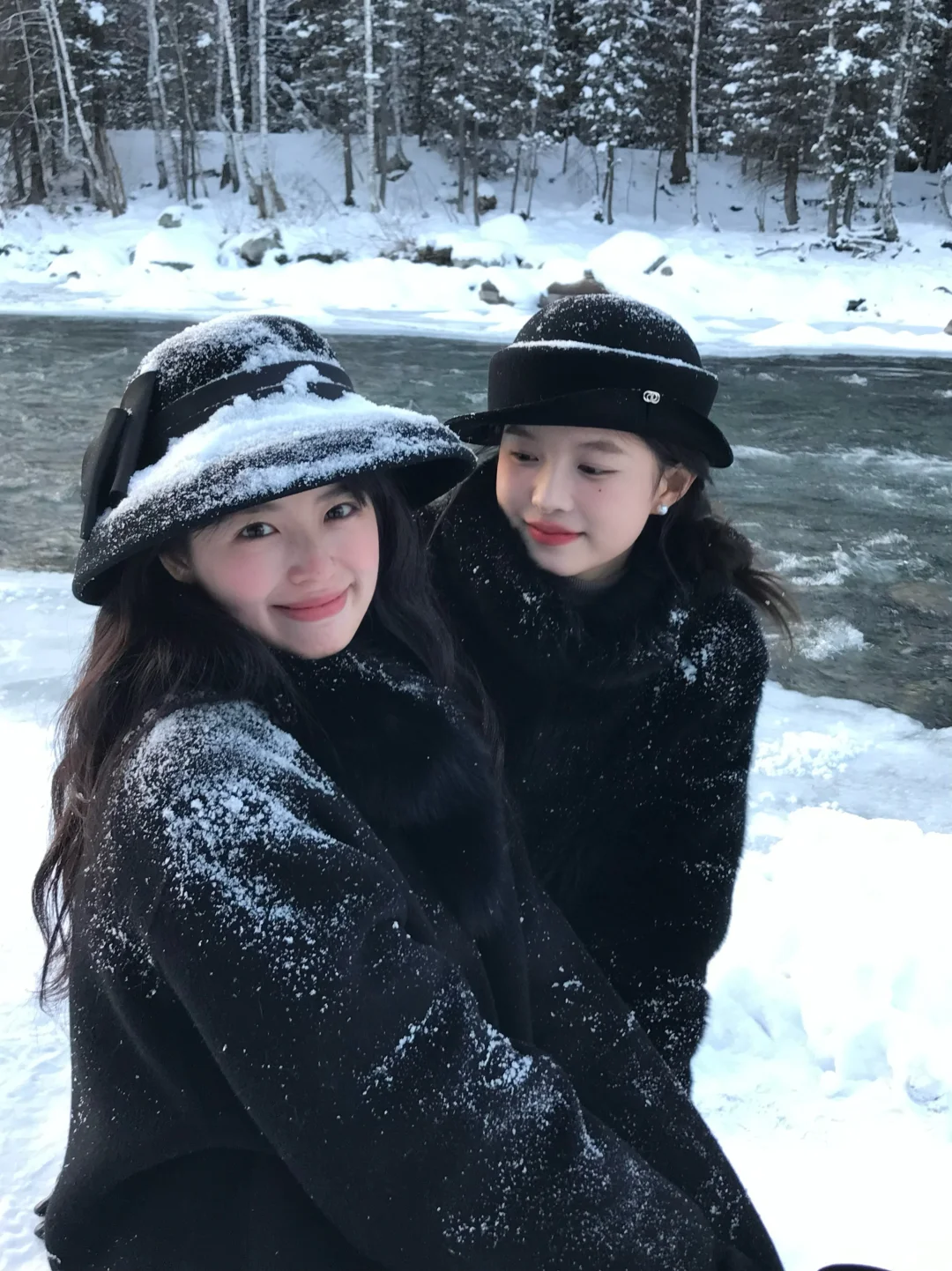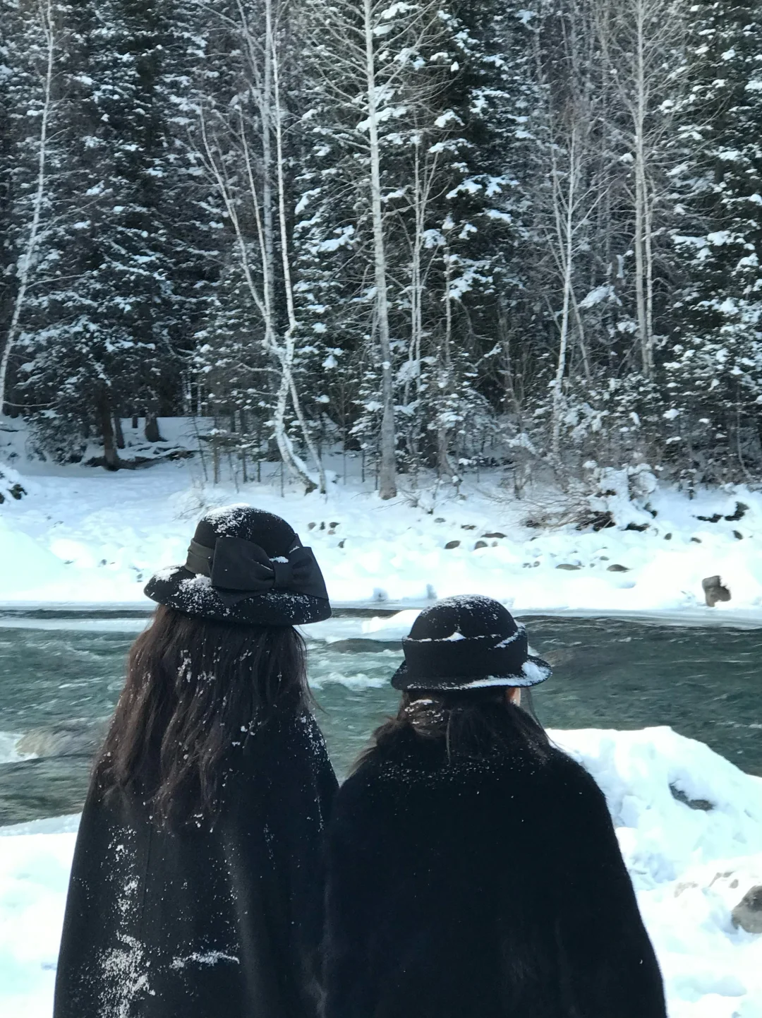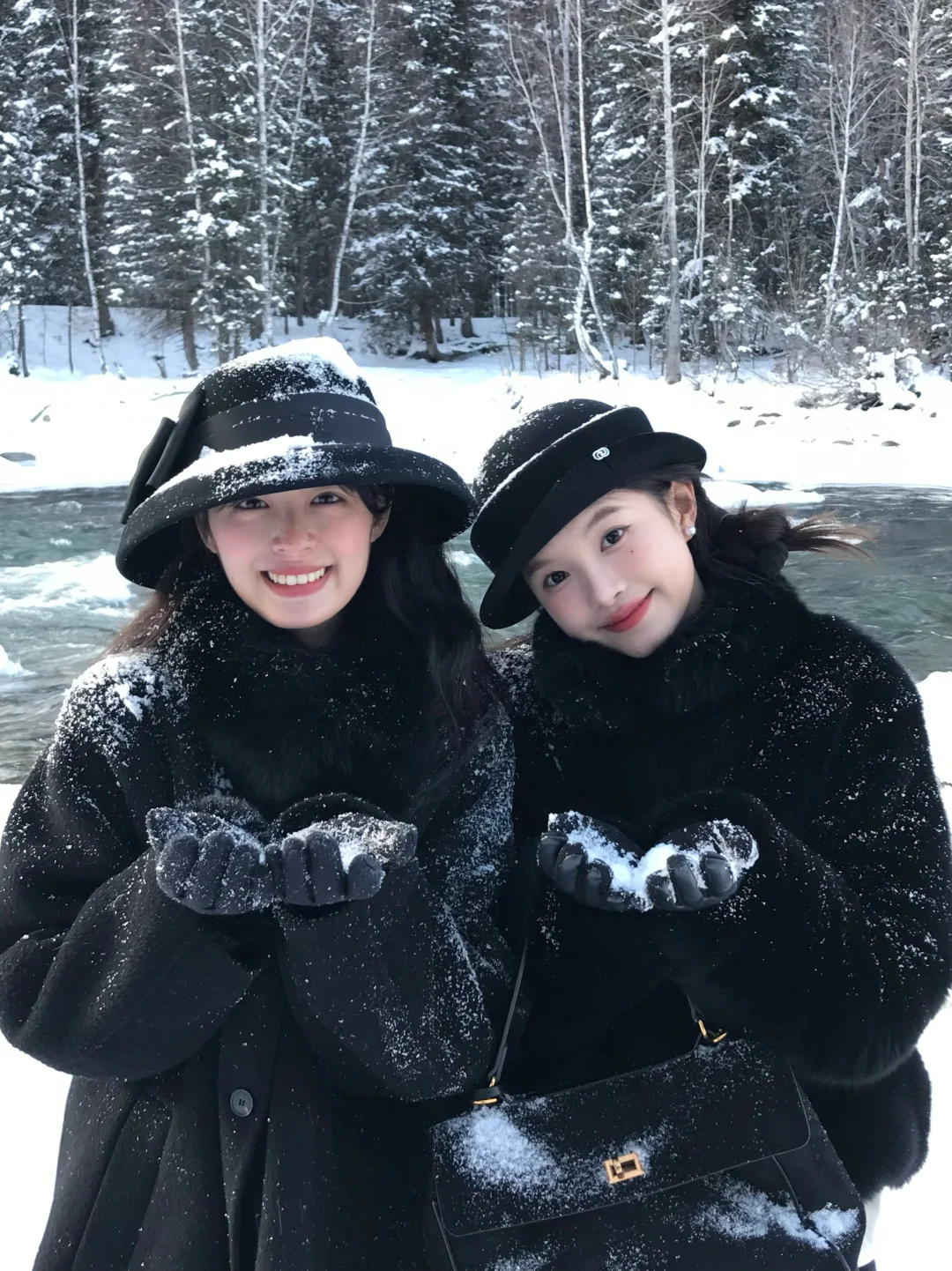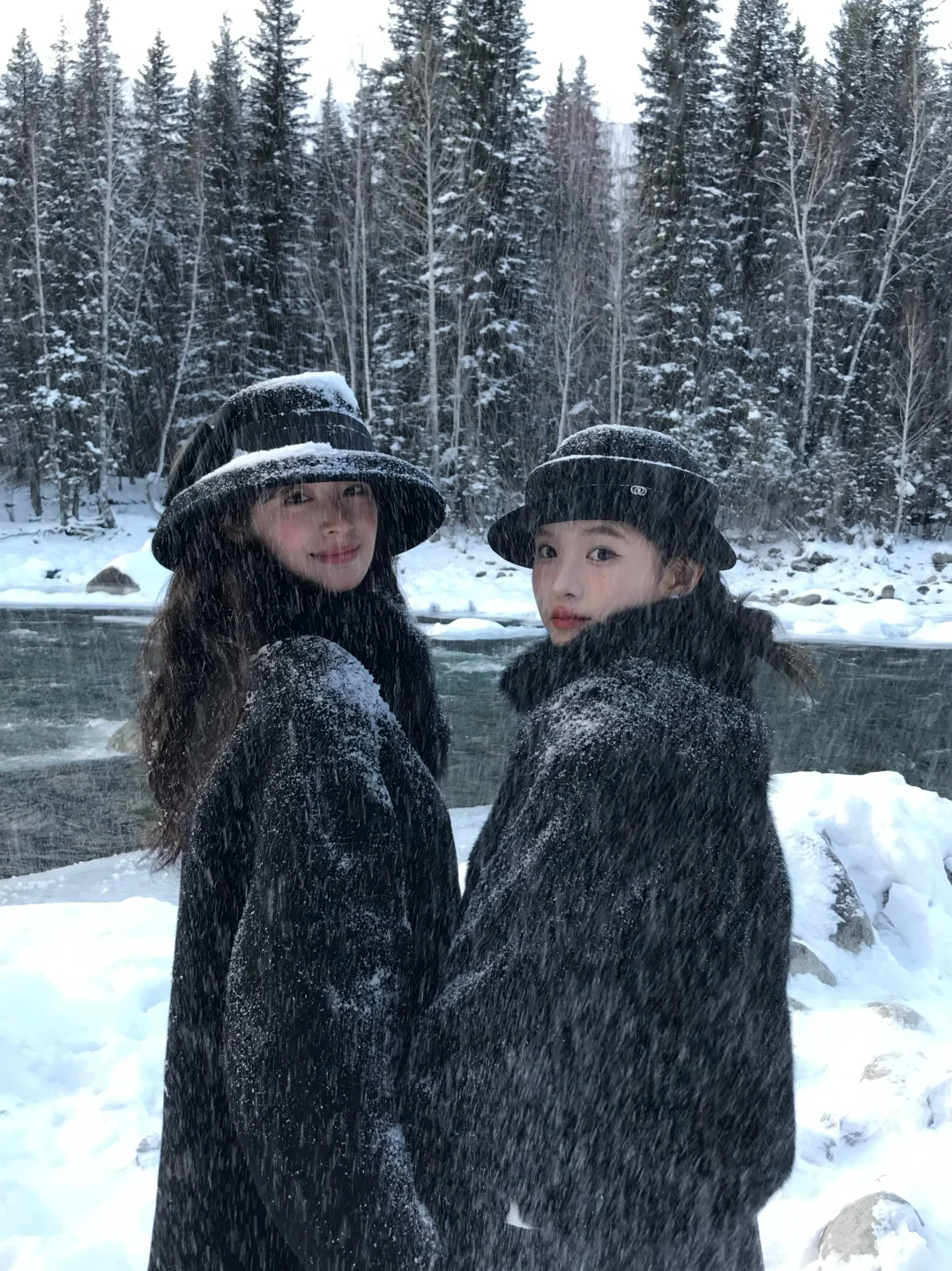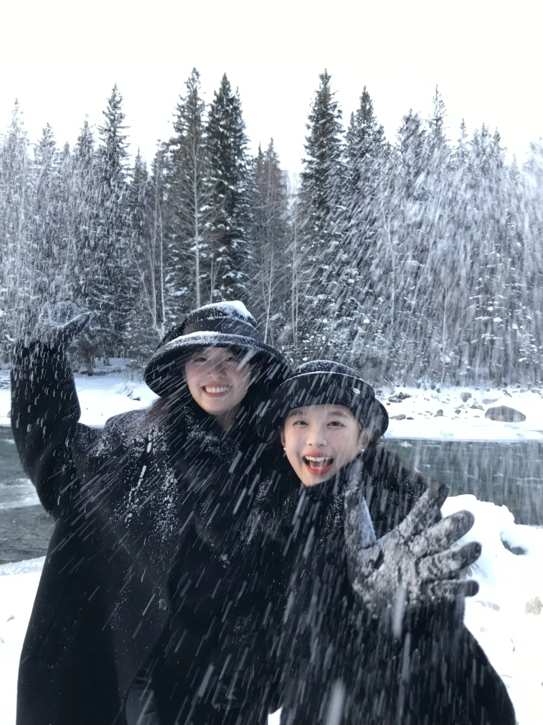 「飞雪 冰河 山林也变得灰白」 细腻雪花飘落在肩上 一起缓缓走向远方 这组照片真的自带电影感! 已经想象到故事情节了嘿嘿! 我和那天在禾木吃饭偶遇到的太巧了! 谢谢帮我们记录了这个美好的一幕~