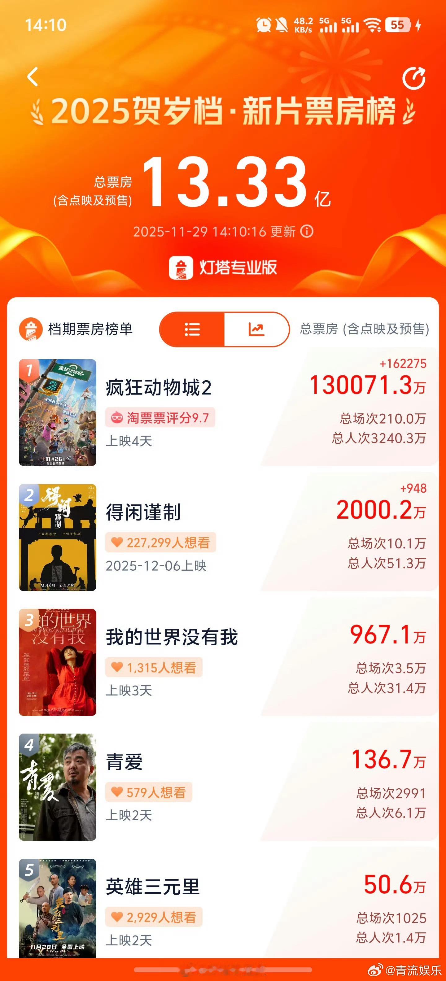 得闲谨制预售票房破1500万对《得闲谨制》有两个期盼——❶内娱顶流主演有电影上映
