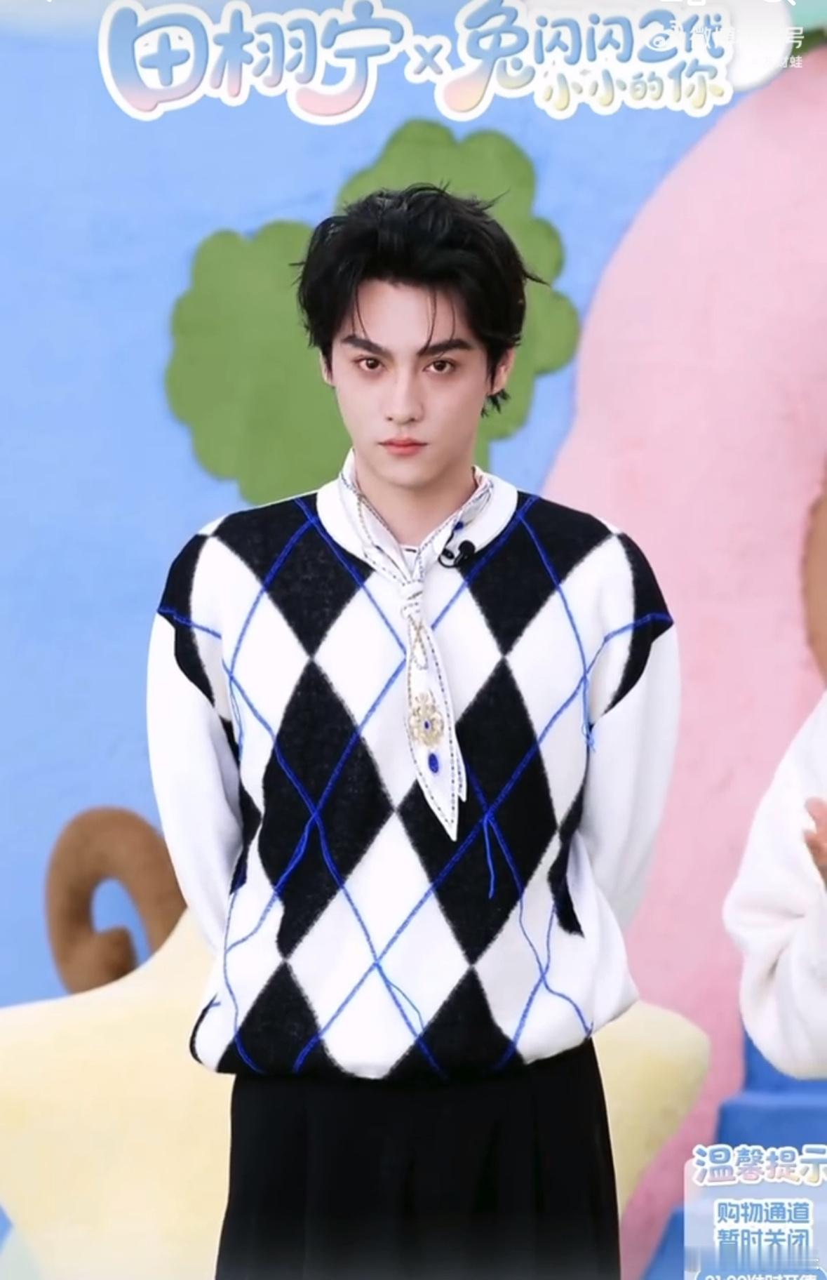 田栩宁今晚活动直播生图,格纹毛衣造型好清新,直播状态也太好了,好帅的一张脸!