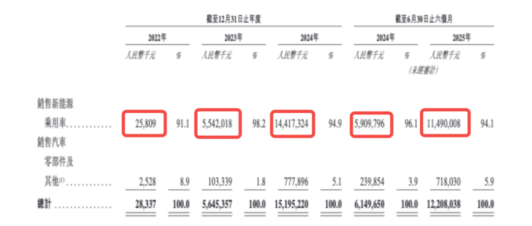 具体来看阿维塔的营收“三级跳”,其中车辆销售收入自然是大头。数据显示,阿维塔2023年靠卖车获得55.42亿元,1年后增长约161%至144.17亿元,再到2025年上半年就已经达到114.9亿元。