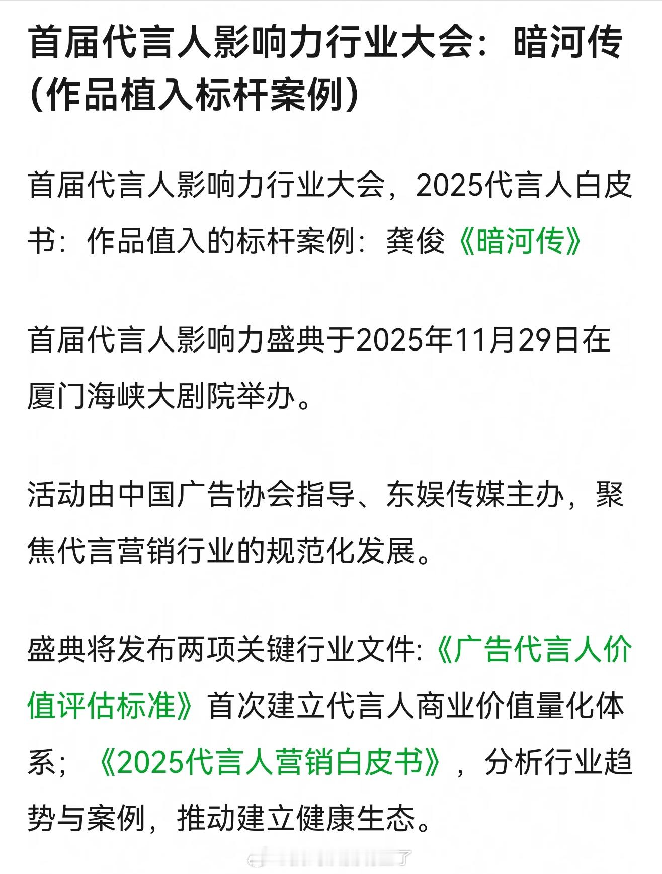 在龚俊生日这天,龚俊《暗河传》作为首届代言人影响力行业大会2025代言人白皮书唯一作品植入标杆案例!!!含金量真的绝了老有人问:粉丝都在吹暗河传爆了,到底爆在哪里啊?现在告诉你:暗河传爆在观众的口碑里,爆在全民玩梗的路人眼里,也爆在台前幕后赚得盆满钵满的平台、制作团队和广告商眼里😎暗河传