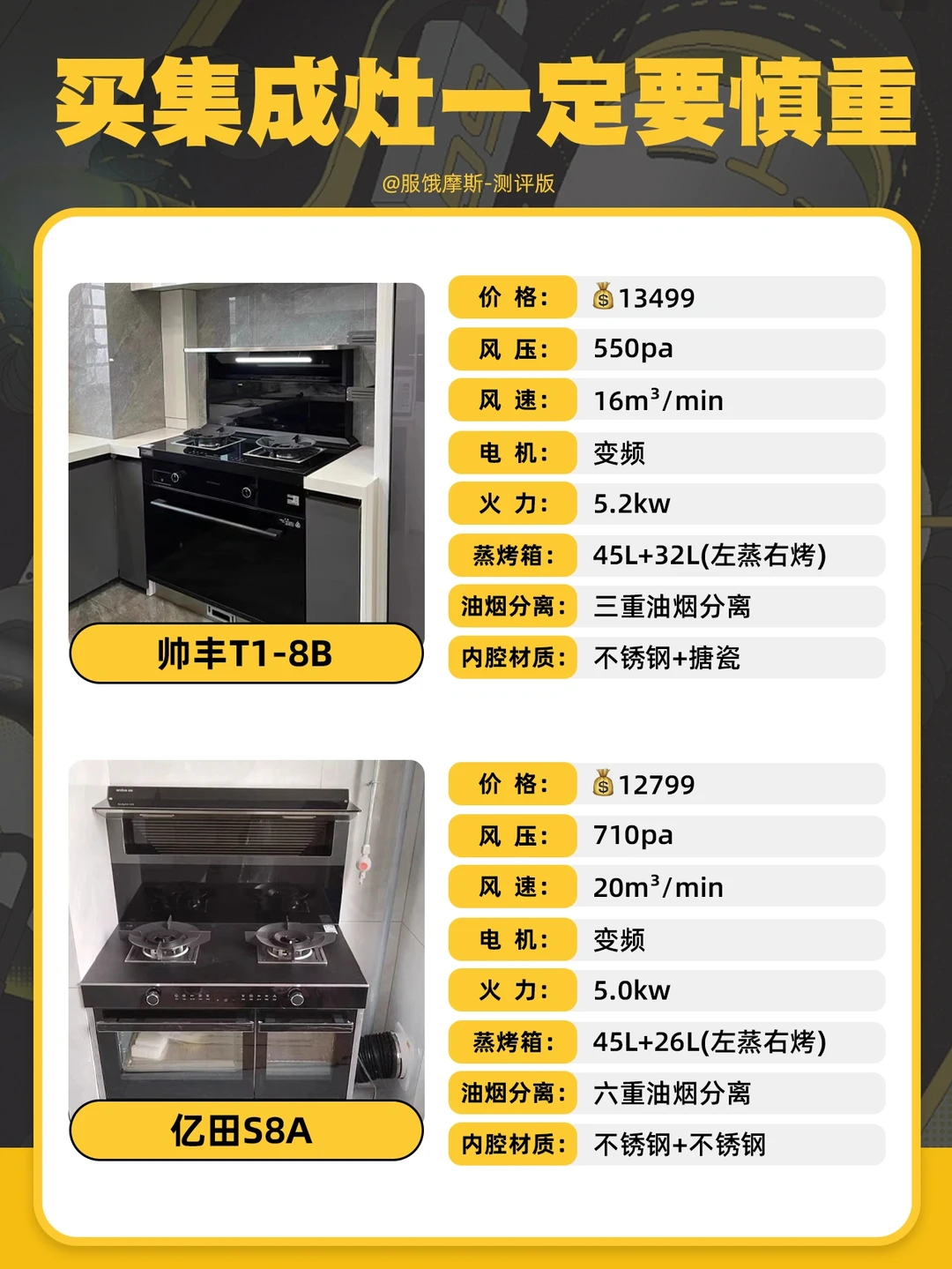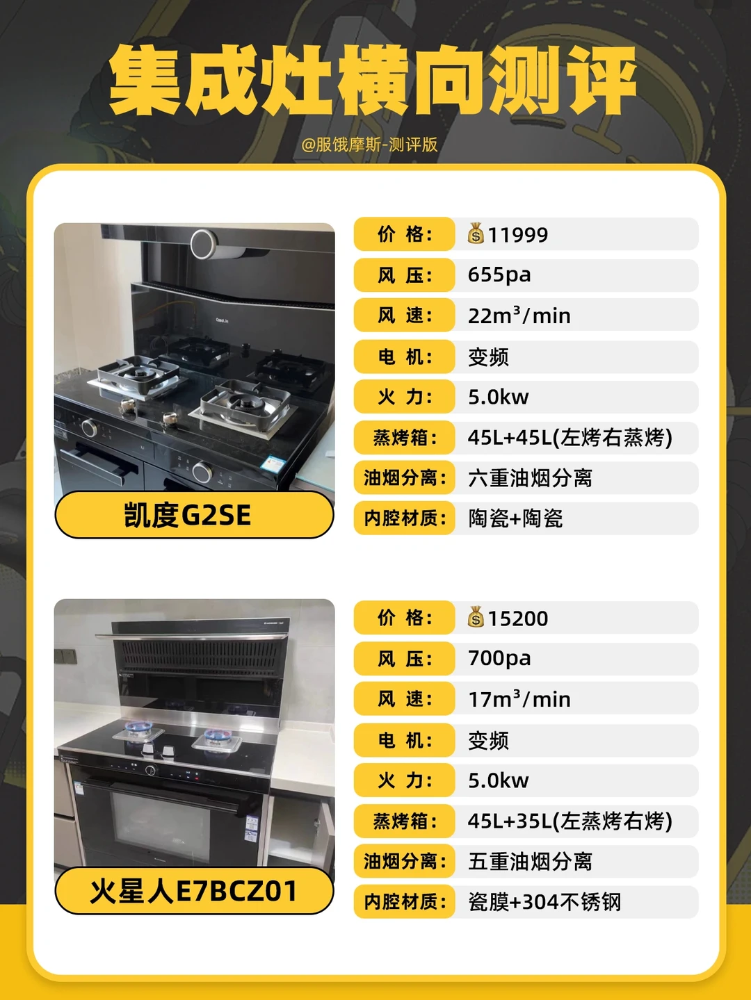 🕹4款2023年热门集成灶测评。分别从上面提到的选购要点提取出的重要参数进行测评。
