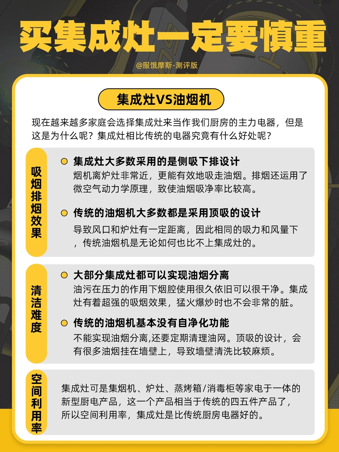 🔴空间利用率:集成灶可是集烟机、炉灶、蒸烤箱/消毒柜等家电于一体的新型厨电产品,这一个产品相当于传统的四五件产品了,所以空间利用率高。