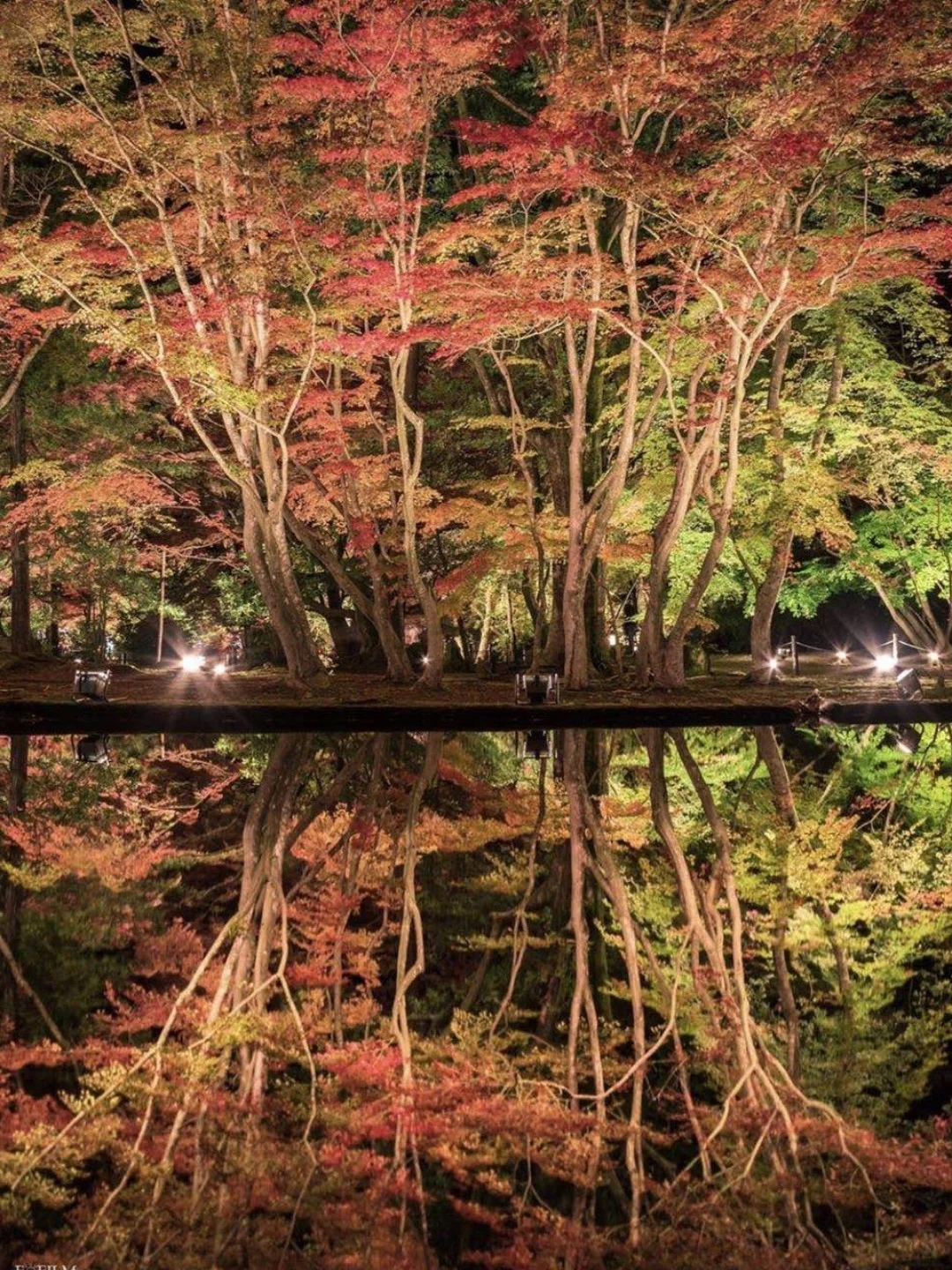 🎊景点名:曾木公园 💌地址:日本岐阜县土岐市 🔍值得看:不知道大家有没有和我一样的感觉——赏红叶堪比赏花!红叶之美不亚于花朵的美丽哇! 🌈曾木公园赏红叶是出了名的,第一在于红叶倒影,光看图片是不是已经很是震撼?倒影的美真是有种魔力,对称开阔的视野也是非常了不起了! 🌈第二点在于夜间赏红叶,大概有几百盏灯吧,与红叶相互映衬,灯光与红叶的美在夜色中是多么迷人而神秘呀! ♥️友情提示:想要夜间去的话,一定提前查好时间哦! 🎁特产推荐:大名鼎鼎的美浓烧! *图片源自网络