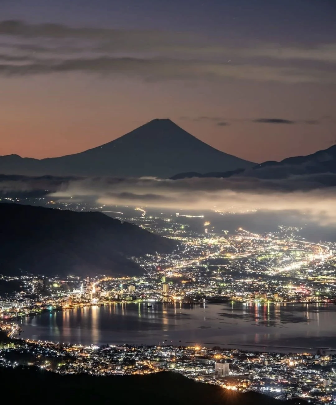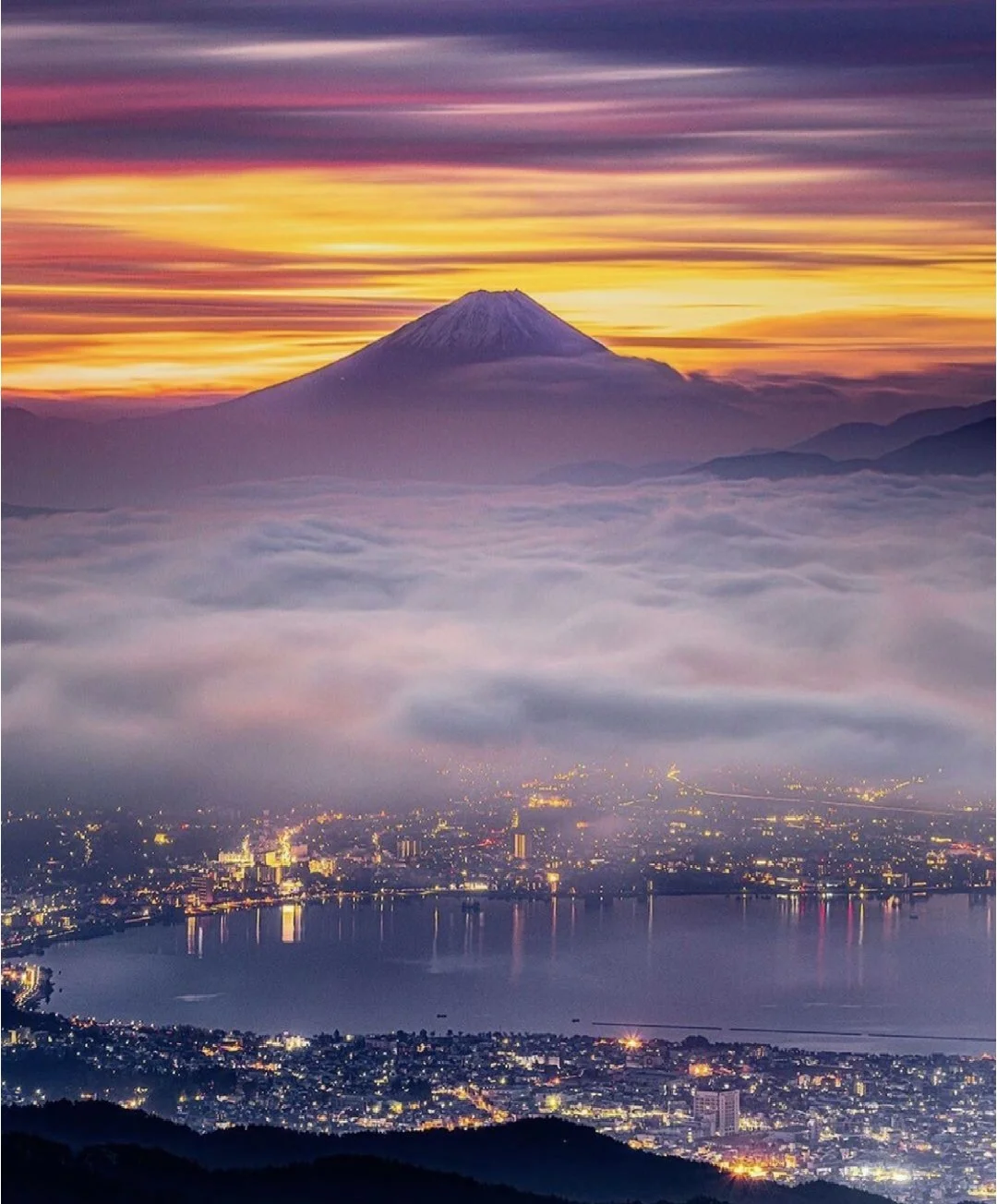 🌈万家灯火。题目我写了人间烟火,到了晚间,站在高处俯瞰,远处富士山为背影,下面星星点点,万家灯火,让我不禁有一丝感动,人间的烟火气息多珍贵呀!