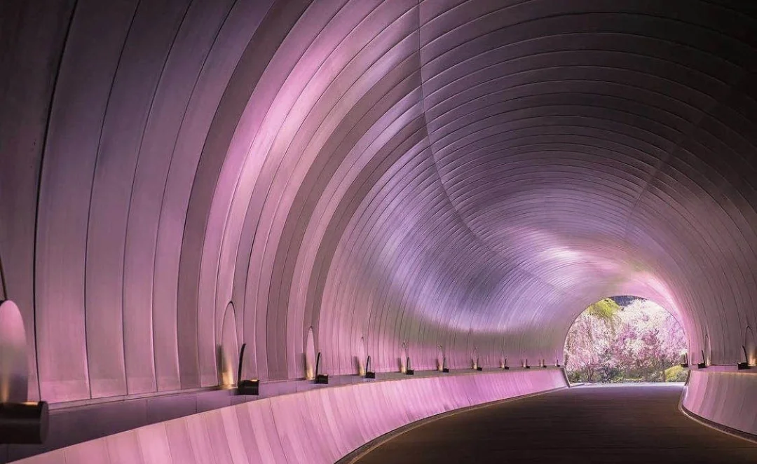 我去之前,自己看过很多官方介绍,网络资料,惊叹于它的几何之美。但,是,当穿过隧道,露出微光时,我内心感叹,终于见到桃花源!虽然是樱花啦😂