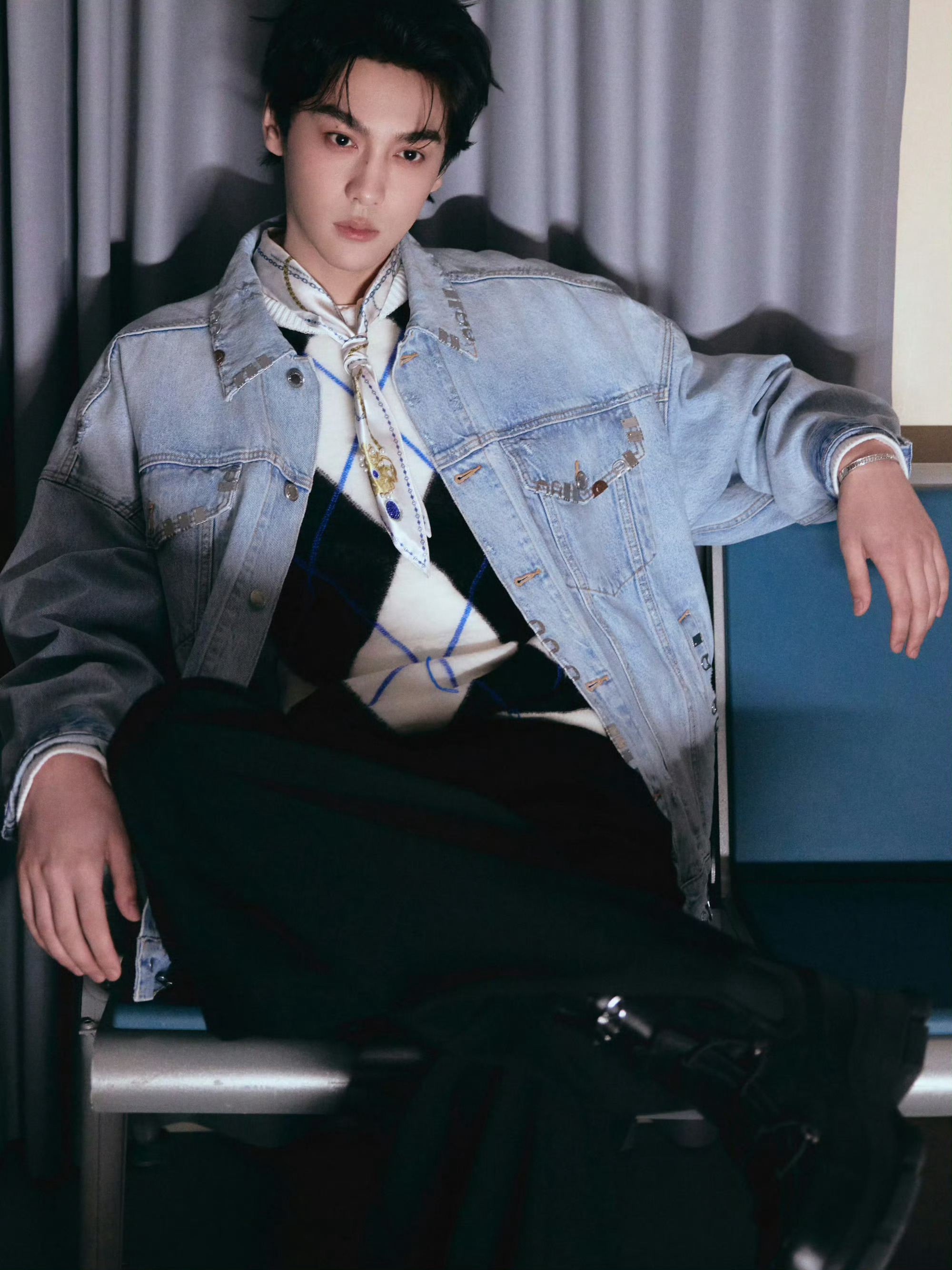 田栩宁|AYOR TOYS 直播造型出图,牛仔夹克来自Alexander Wan