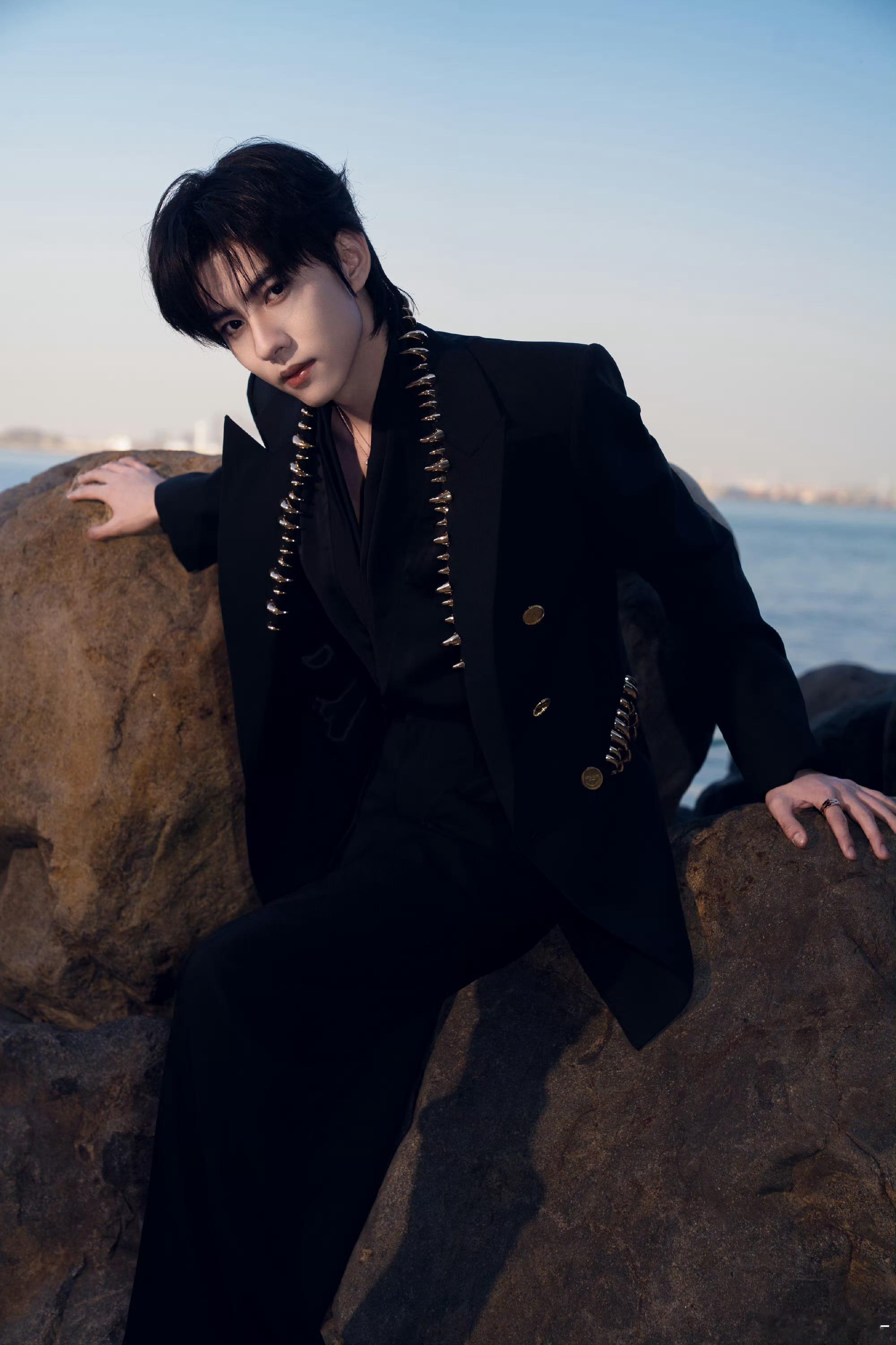 刘轩丞|首届代言人影响力盛典造型出图,精致剪裁西服套装缀以金属铆钉,优雅与叛逆碰