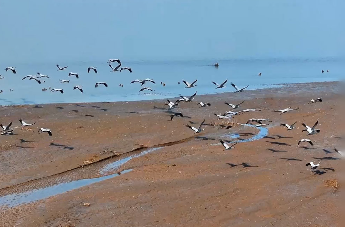 近日,随着气温降低,陕西省合阳县的洽川湿地迎来上千只国家二级保护动物灰鹤。洽川湿地是黄河流域湖泊型湿地之一,宛如镶嵌在黄河中游的一条生态廊道,这里芦苇摇曳、滩涂舒展,多样的地貌为候鸟提供了丰沛的食物与安宁的栖居之所。灰鹤在这里舒展双翼,从水面次第腾飞,鸟鸣声此起彼伏,清脆而悠远,成为冬日限定的绝美画卷。