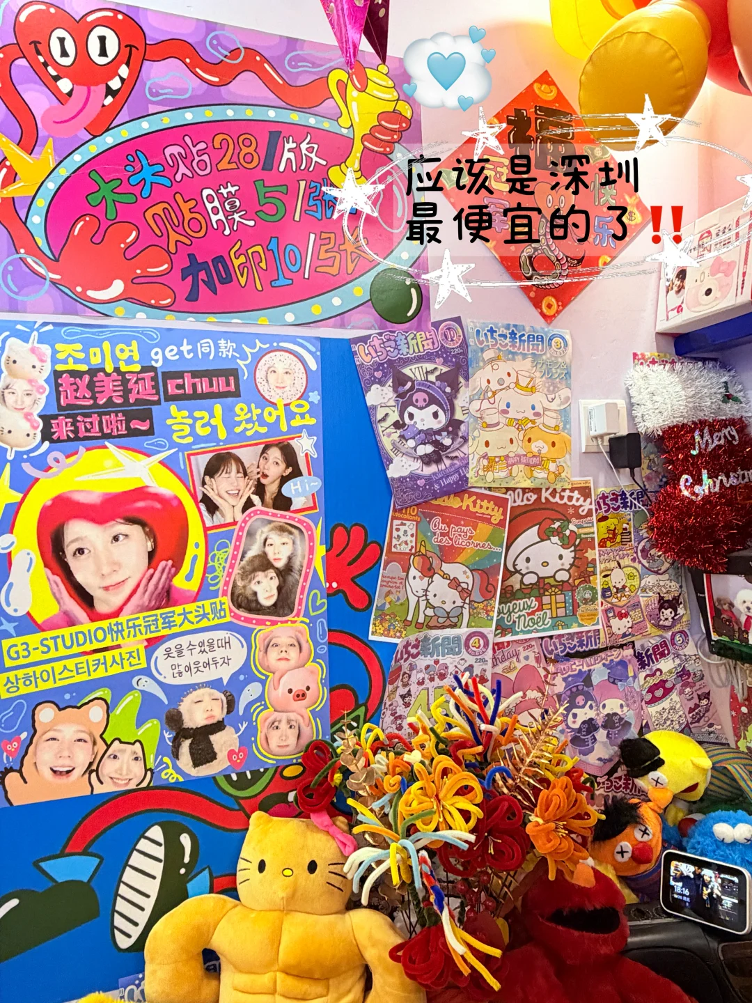 在深圳也能拍到上海同款抽象土味大头贴啦!! 香港人来龙华一定去试一下 拍了五分钟拿回家笑了好久!! 图册真的好丰富,里面有各种抽象的,食物、表情包、卡通系列以及圣诞系列的🎄 小道具 也很多……