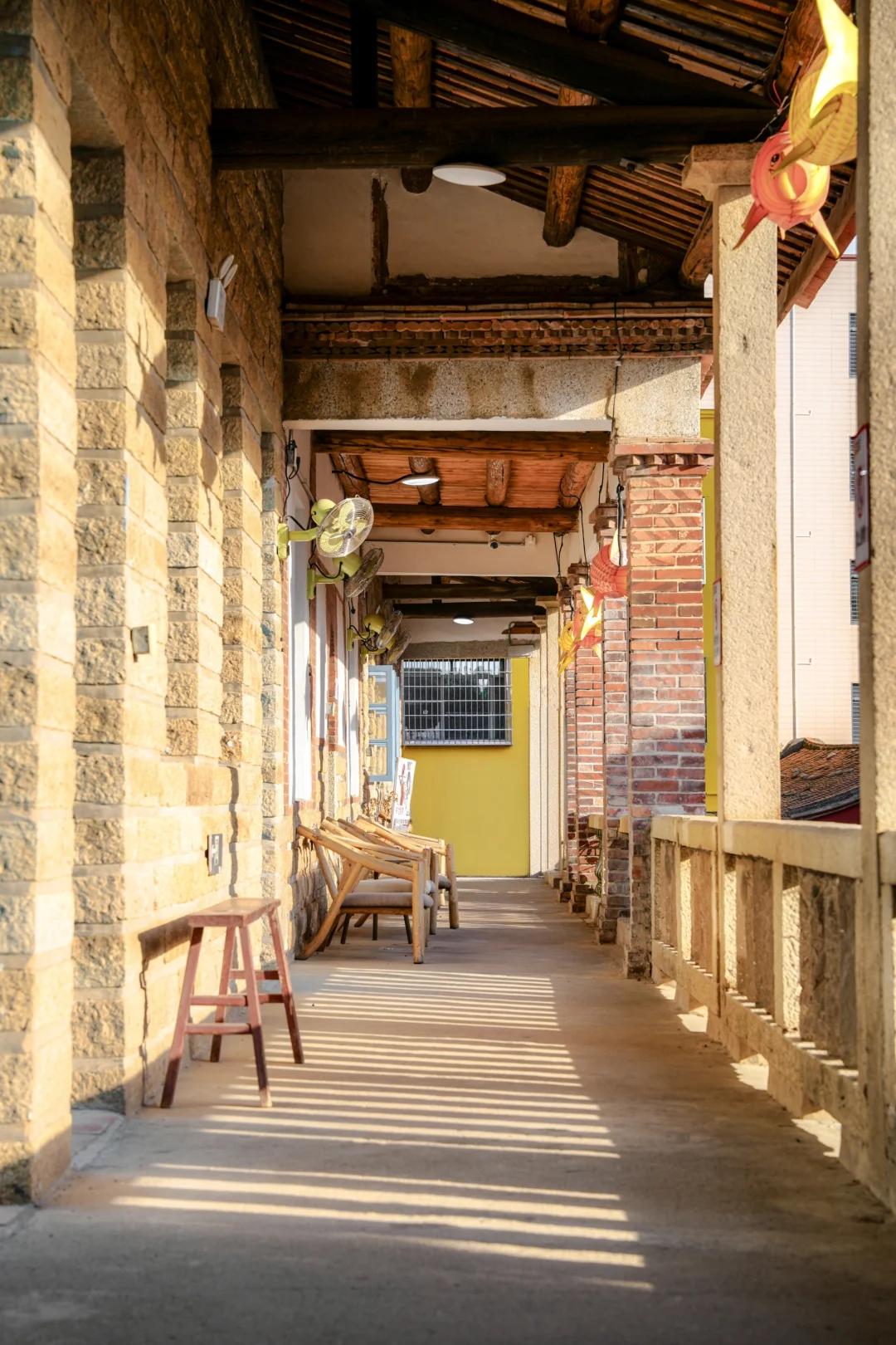 🔸欧厝小学旧址被改造成了展览空间和咖啡馆,鱼灯古厝长廊很有年代感 P2-6