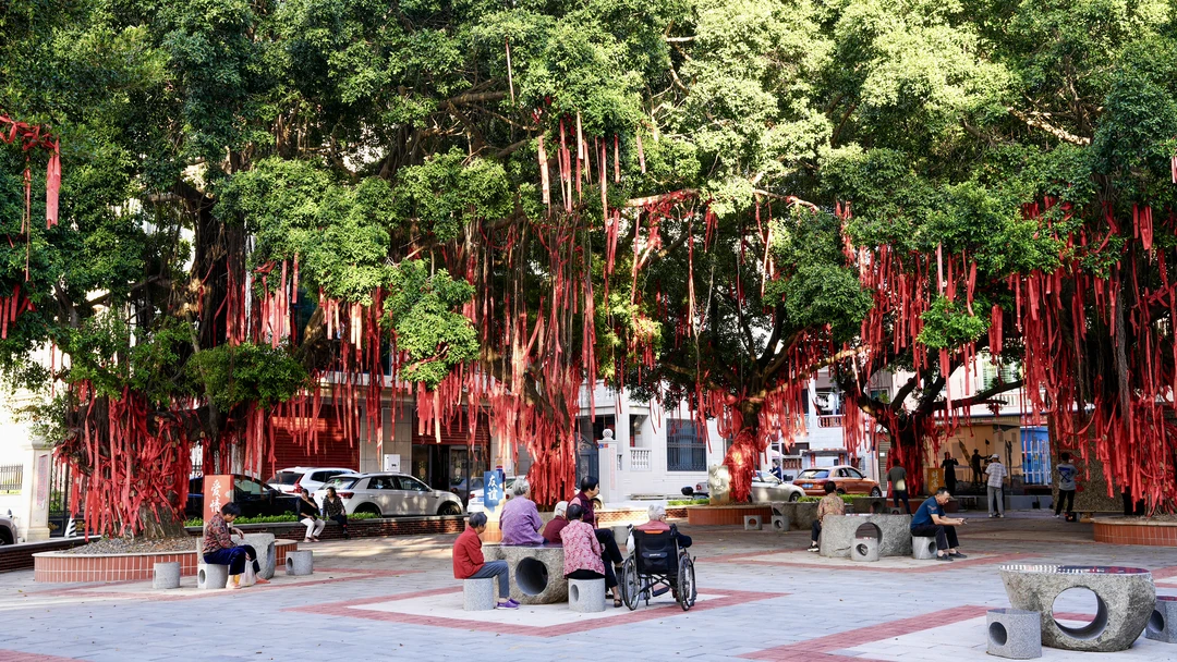 🔸泰山公园的树挂满了红色祈福彩带,午后村民们纷纷在公园里晒太阳 P7