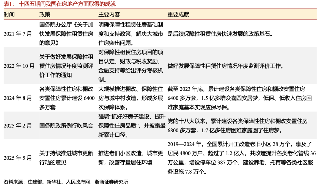 习主席关于《中共中央关于制定国民经济和社会发展第十五个五年规划的建议》的说明,明确将房地产纳入民生保障范畴。“《建议》稿牢牢把握共同富裕的目标要求,围绕保障和改善民生,在……推动房地产高质量发展……等方面部署一批均衡性可及性强的政策举措”。相比“十四五”时期强调“稳地价、稳房价、稳预期”,当前政策表述的重点更聚焦于“保障、改善民生”与“构建房地产发展新模式”。