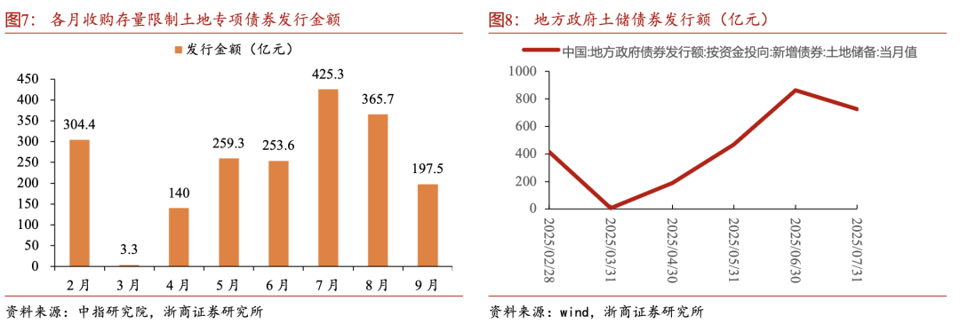 土地收储方面2025年进度有所加快,2026年预计有望再加速。截至9月27日,根据中指数据,全国拟使用专项债收储存量闲置土地超4659宗,涉及金额6222亿元;从发行节奏看,6月以来发行进度明显加快,2025年土储专项债共发行3269亿元,6、7、8月平均每月发行729亿元,2026年有望再提速。