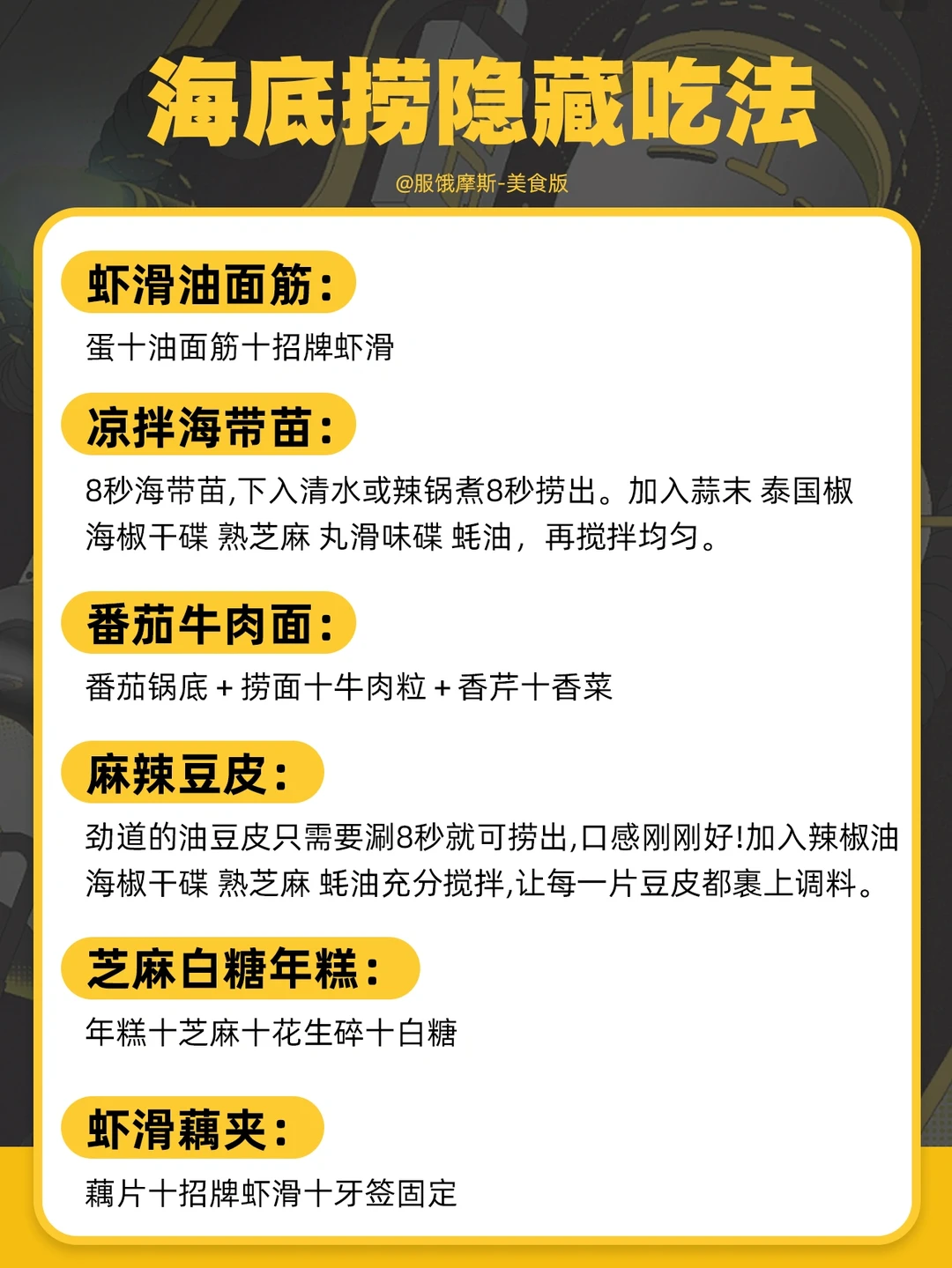 一篇文全部搞定,赶紧收藏起来,下次吃海底捞用起来。