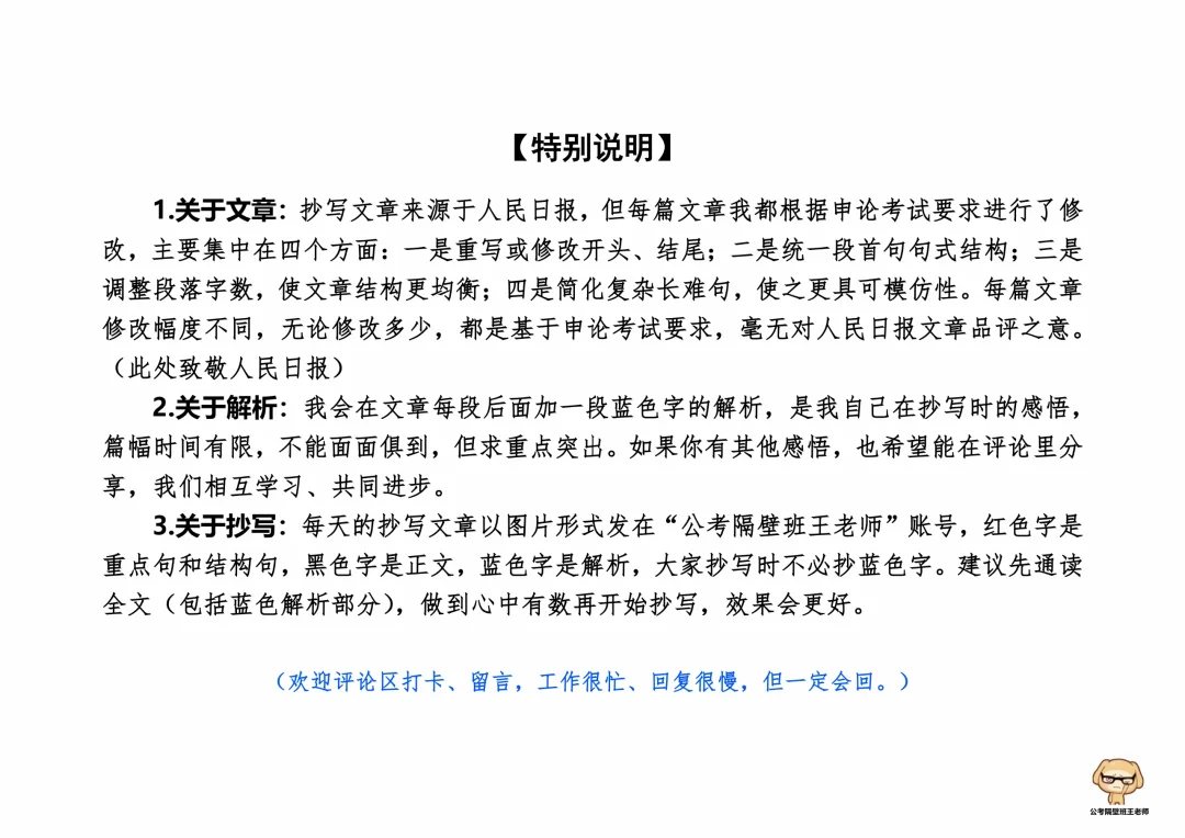 这里是公考隔壁班王老师独创的“每天半小时・申论80分”抄写团,欢迎加入我们!