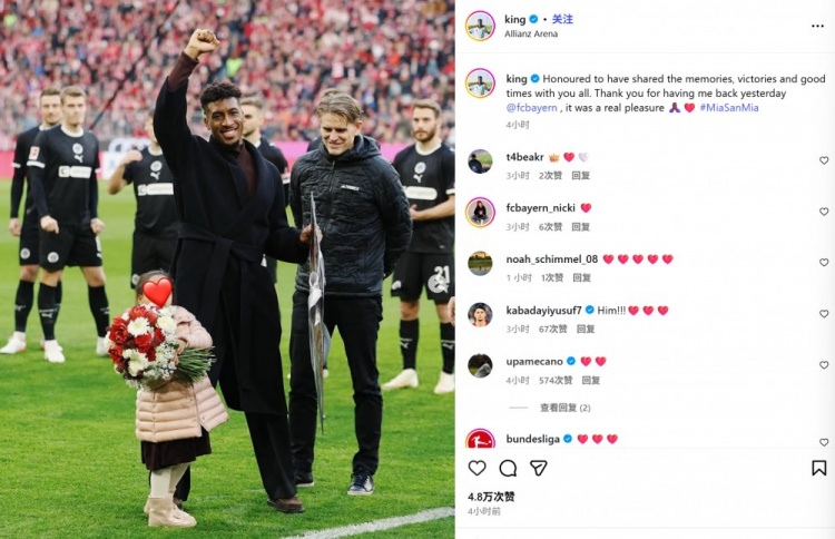 他也在今日通过社媒晒出现场照,并配文:“很荣幸能与大家分享这些回忆、胜利和美好时光。感谢拜仁慕尼黑昨天邀请我回来,我真的非常开心#MiaSanMia(拜仁座右铭:我们就是我们)”。