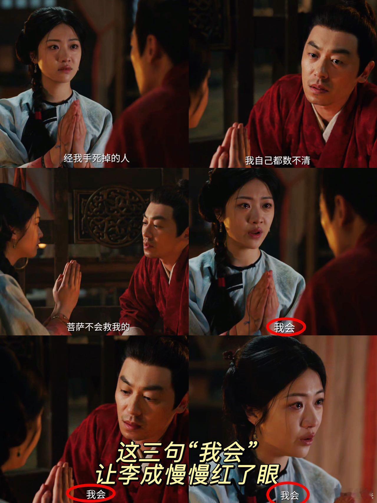 听懂白依梅的三句“我会”,李成直接泪崩了……终于等到预告里的名场面播出了,李成和白依梅这对cp是我最期待的了……细节就是俩人第一次接触,白依梅为重伤的李成医治,那时的她甚至都不敢看李成的脸,要求盖上才敢给他治伤,但也会拼尽全力护他周全……虽然白依梅看着很柔弱胆小,但她内心却很有主见,随着李成说出自己的过往遭遇,白依梅眼里全是心疼,也对他有了新的认识……李成会在他和下属发生争执大发雷霆后,细心的跑去帘子后面安抚受到惊吓的白依梅,直到她的状态好转后才会离去……就是这些细微的举动,李成在她心里变得不一样了,虽然她依旧讨厌和害怕杀戮,但会在夜深人静的时候,给李成诵经祈福,希望他的伤赶快好起来……李成一个从地狱里爬出来的人,他可不会去相信菩萨,但听到白依梅求菩萨让他做个好人,李成自知自己杀业太重……“菩萨不会救我的”白依梅回答的三个“我会”,语调重音的不同,也是对李成最坚定的肯定,这救赎感太强了,李成内心产生自责,生逢乱世他的遭遇让他没得选,但白依梅没有用世人的眼光去看待他,在她心里李成不是个坏人,这一刻李成的情绪彻底崩不住了,哭了出来……白依梅离开的时候,是李成亲自送她的,白
