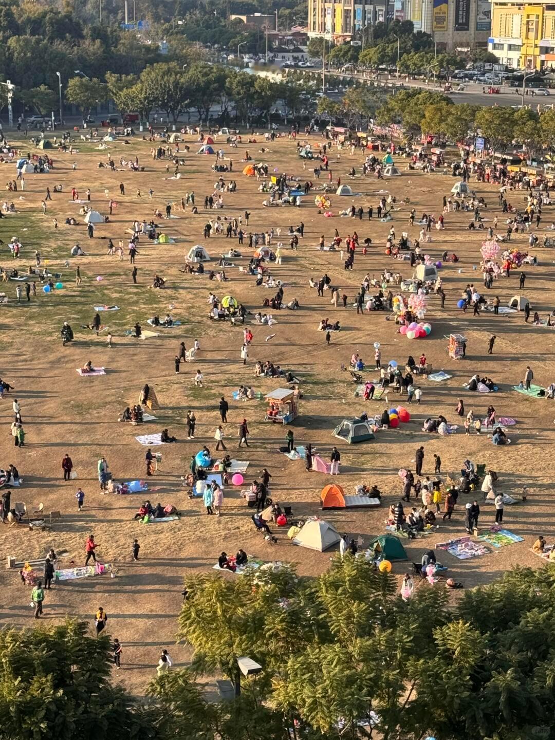 冬天的公园到处是人,联想到巅峰时期的前苏联和美国,人们走出家门,享受闲暇周末时光。