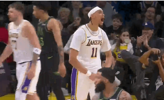 半场比赛,湖人球员贾克森-海斯投篮3中3,得到6分3篮板2封盖。
