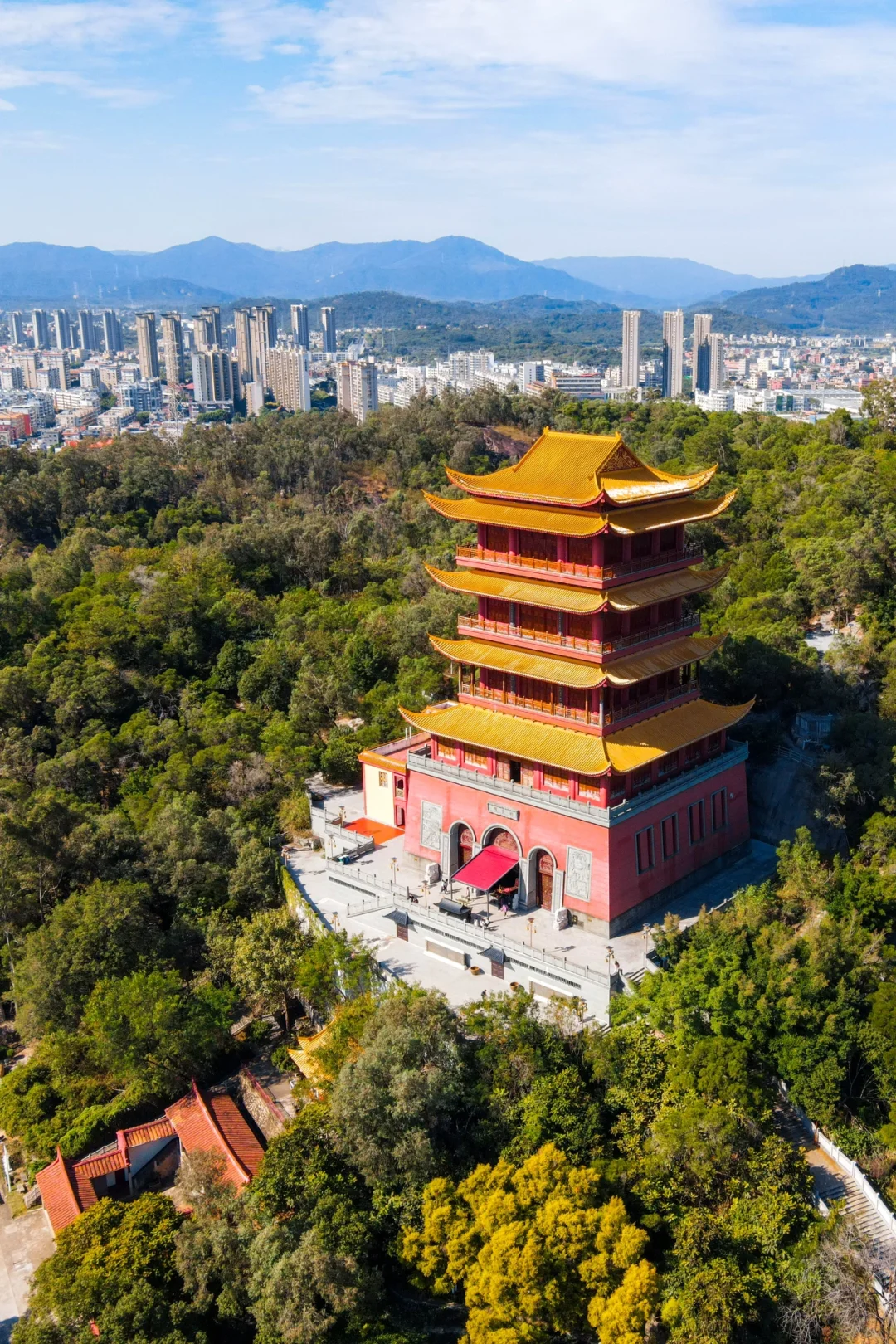2️⃣从寺庙正门往上走可以到达魁星阁,沿着木栈道继续向上还可以俯瞰整个寺庙及同安城全景