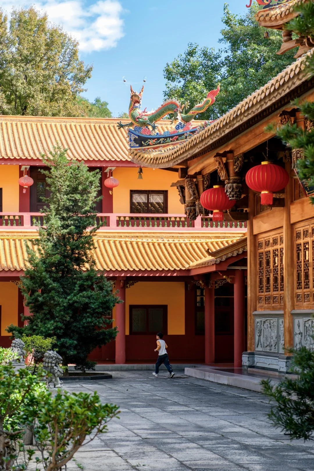 1️⃣ 寺庙由下而上集中在一条中轴线上,建筑群错落有致,寺后有纪念朱熹的明代建筑文公书院、仰止亭、石瞻亭等,环境清幽,值得一逛