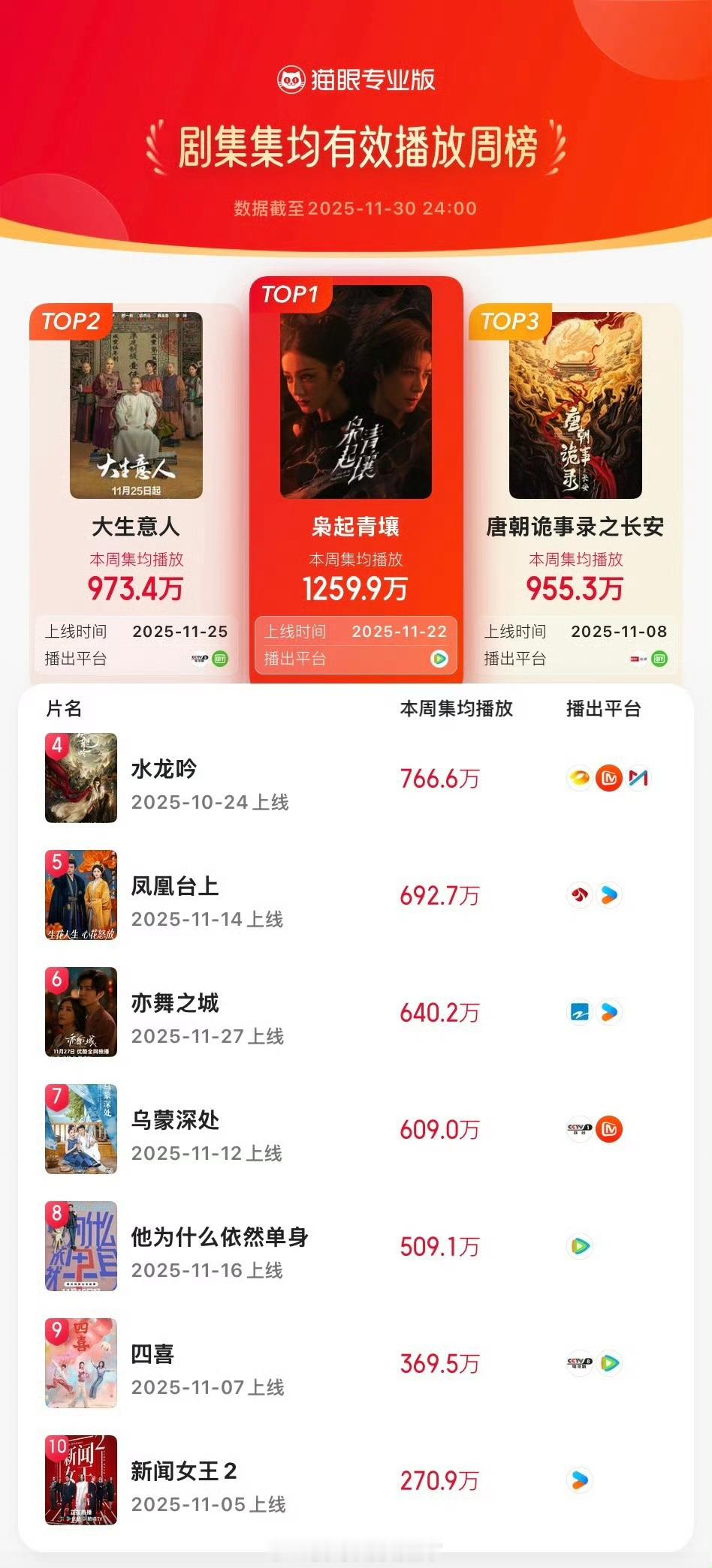 恭喜迪丽热巴《枭起青壤》获得猫眼剧集热度周榜、集均有效播放周榜双榜TOP1🎉🎉🎉枭起青壤