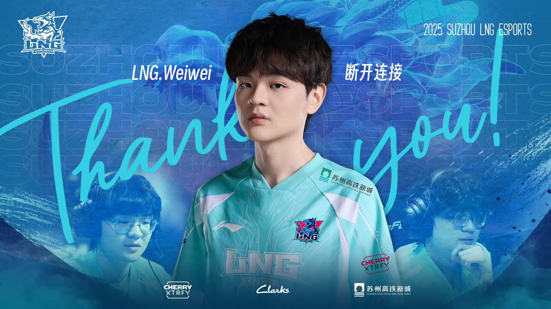 虎扑12月01日讯LNG发布人员变动公告:打野选手Weiwei正式离队,具体如下: