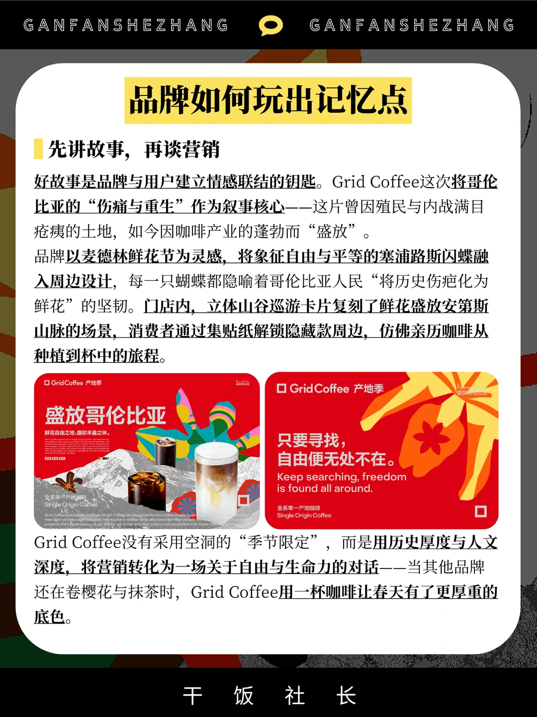 🧐今年,让我尤为惊喜的是Grid Coffee的春日产地季,这次它给我们带来的是充满浪漫风情的哥伦比亚故事,以「盛放哥伦比亚」为主题,在历史背景之下,让我们感受到哥伦比亚波旁咖啡豆的丰盈之味,以及哥伦比亚人民化伤痛为鲜花的自由精神✨