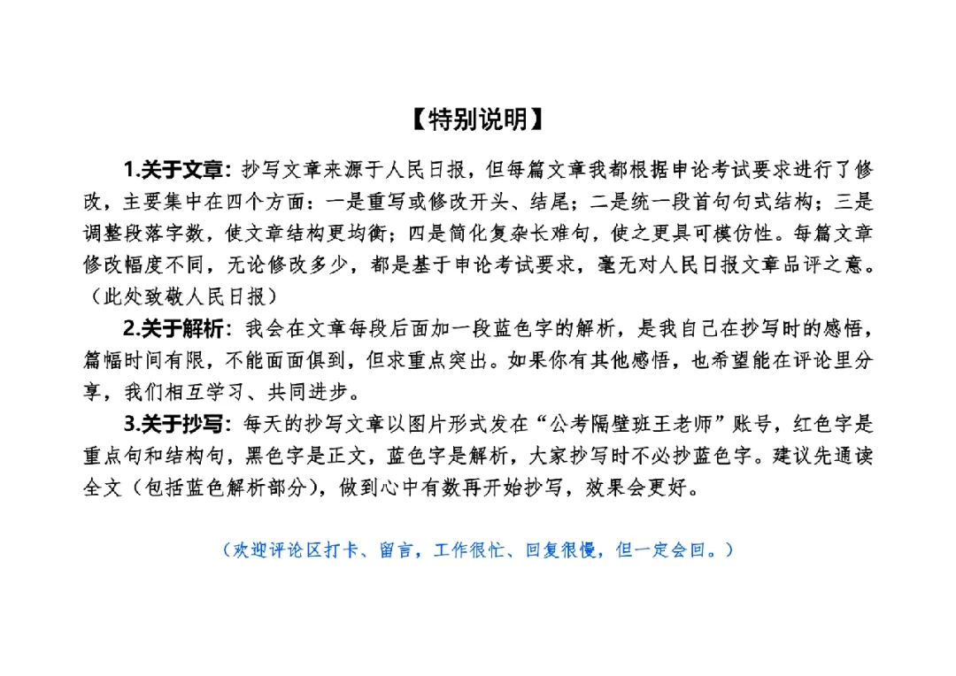 这里是公考隔壁班王老师独创的“每天半小时・申论80分”抄写团,欢迎加入我们!