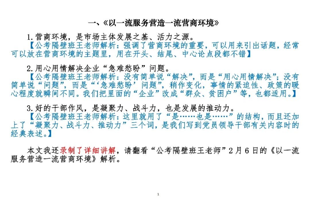 1.《以一流服务营造一流营商环境》(2.6日,周一)