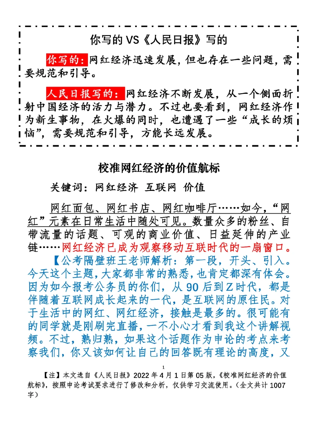 申论押题|我不想当网红!
