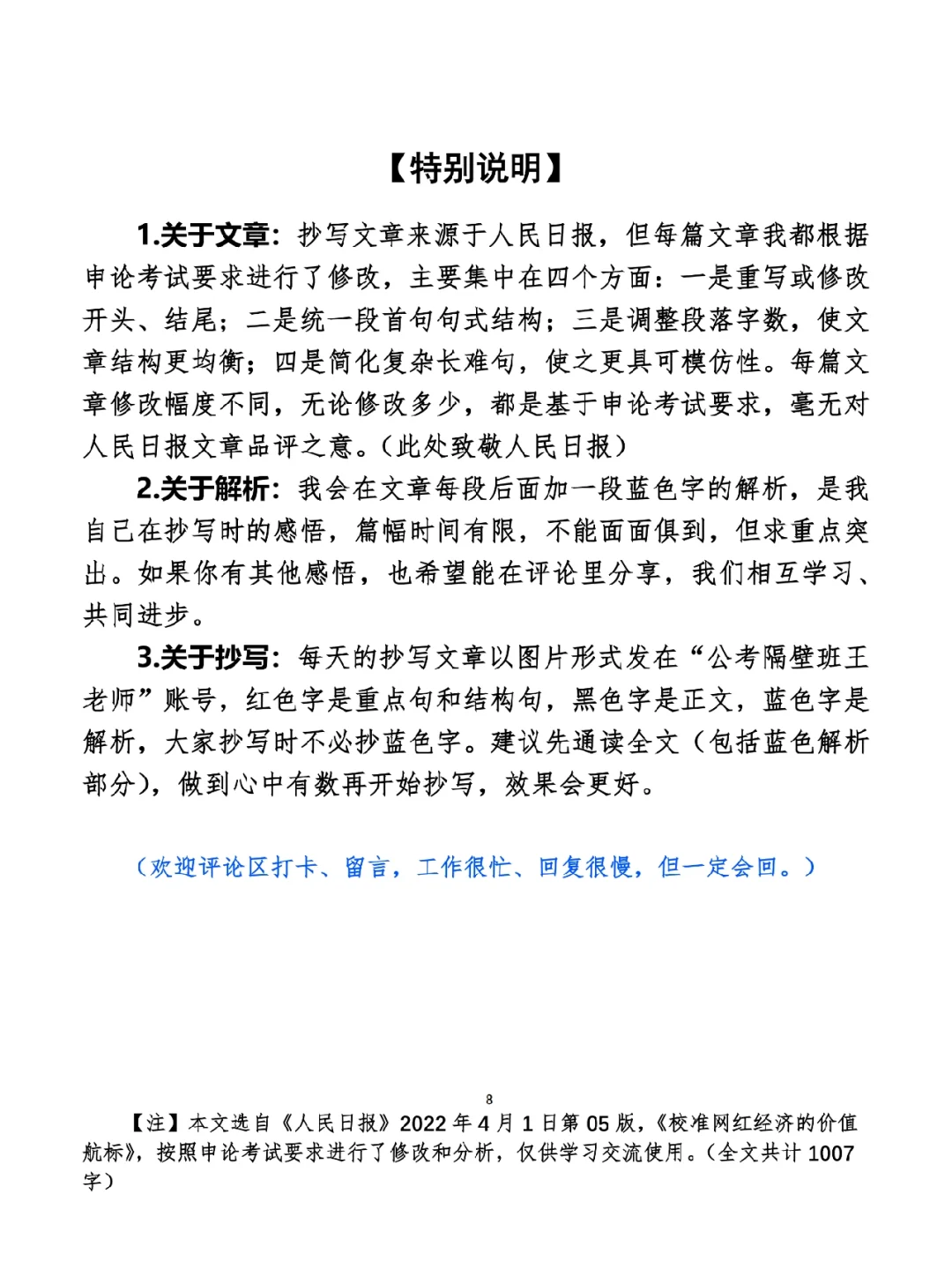 自从我全网关注超过50万之后,慢慢地开始有人认为我是个网红了。 对此,我表示反对。 我只想做个老师,50万于我而言不是粉丝,而是学生或读者。 ⭐️ ⭐️ ⭐️ ⭐️ ⭐️ ⭐️ 这里是公考隔壁班王老师独创的“每天半小时・申论80分”抄写团,欢迎加入我们!