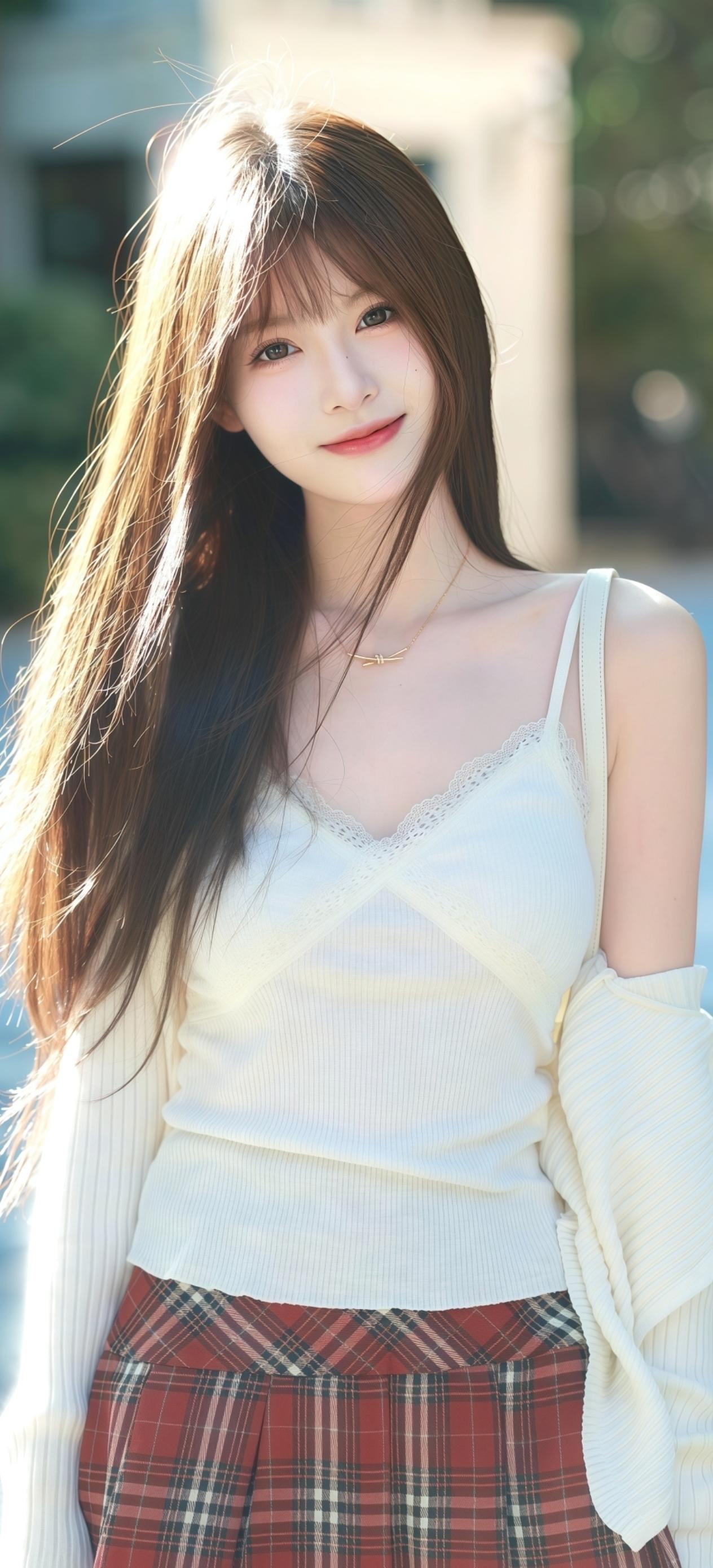 柳眉杏眼映朝霞,玉面含羞似海棠。 一笑嫣然花自愧,千般妩媚月难夸。 轻移莲步香风动,低语娇声入画纱。 世间难寻此颜色,春风不及美人华。