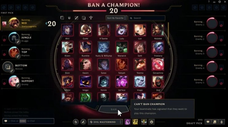 首先,玩家将无法禁用队友正在选择的英雄。有时对局甚至还没开始就产生了内讧,这就是原因之一。我们认为在队友之间出现分歧时,比起让某人玩不到某个英雄,保证玩家能选到自己想玩的英雄才是更重要的。更何况对面也不一定就会选择这个英雄。