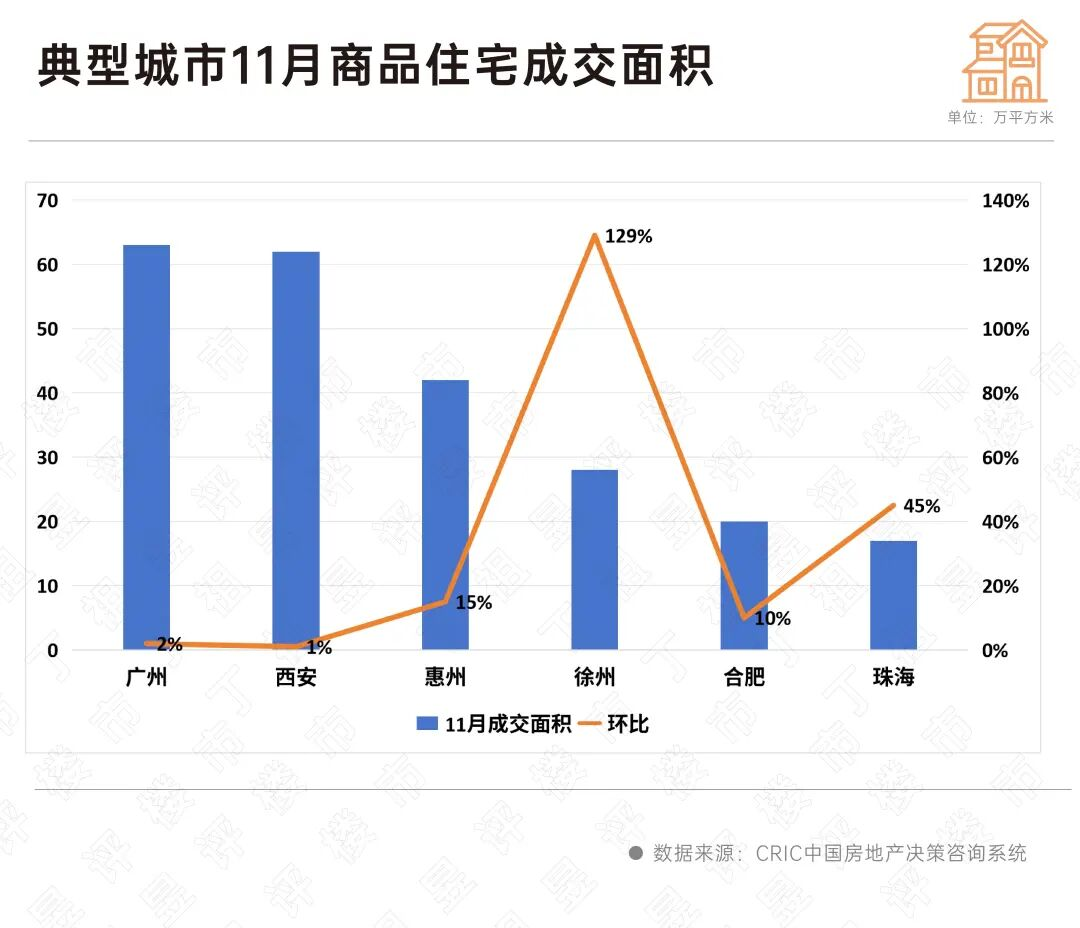 一线城市中,广州因供应放量带动成交环比微增2%,北京整体成交增长动能虽有所放缓,但是前11月累计同比仍微增1%。