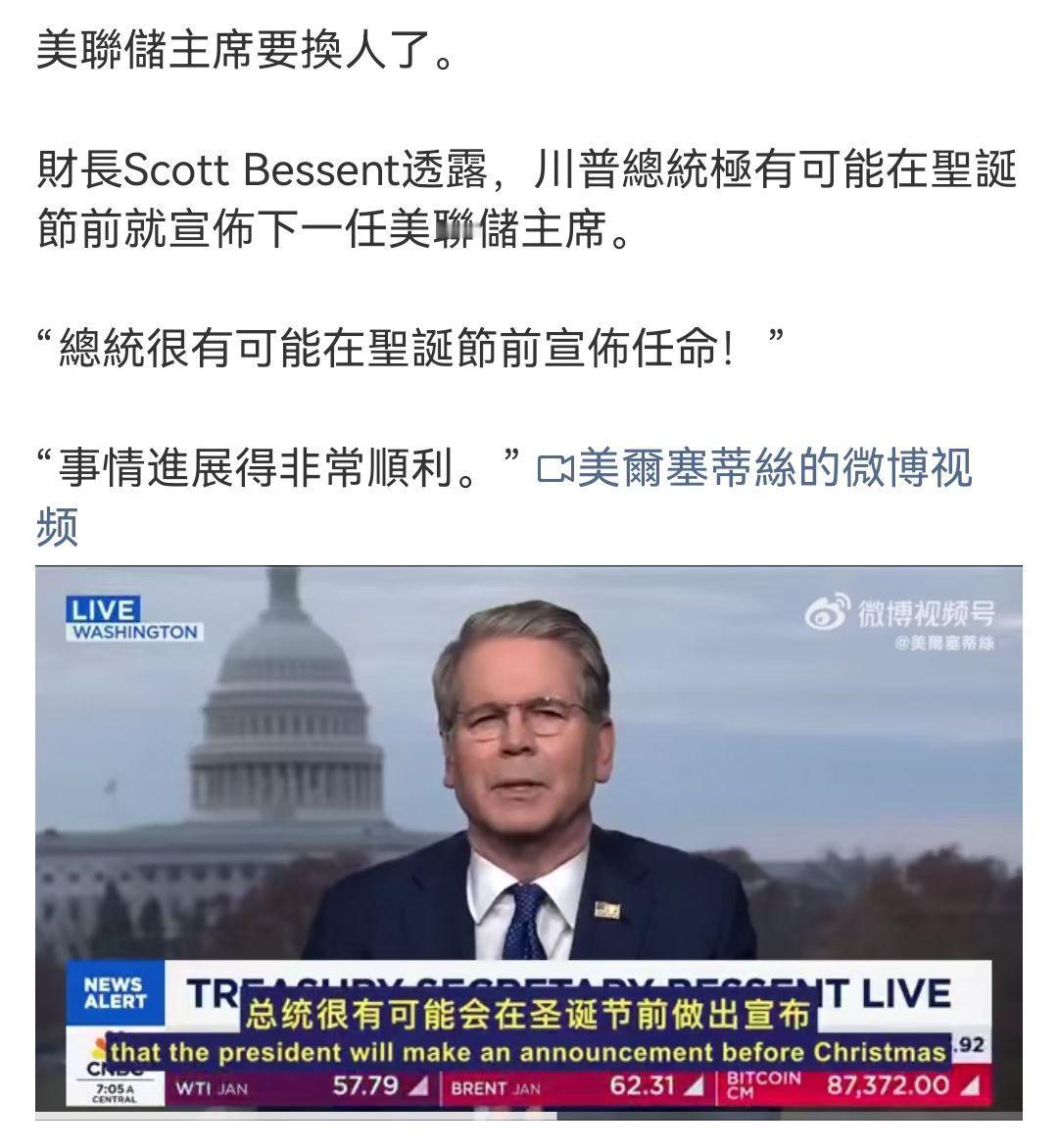 美联储人事变动箭在弦上,特朗普已敲定下任主席人选,哈塞特作为头号热门,堪称“降息狂人”。他不仅直言若上任便推动大幅降息,其宽松主张更与特朗普的政策诉求高度契合。市场对这一潜在变局反应积极,降息预期持续升温,只需静待12月圣诞节前提名正式公布,看这场货币政策转向能否落地。