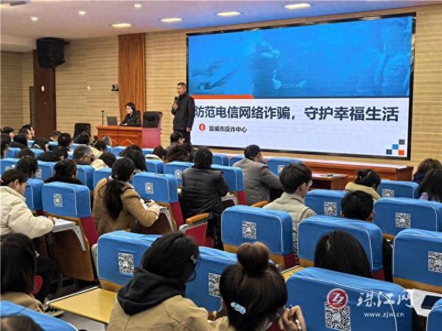 为切实增强广大教师群体的电信网络诈骗防范意识与应急应对能力。11月30日晚,宣威市公安局反诈中心、宛水派出所携手走进宣威市第六中学,开展了一场针对性极强的教师防范电信网络诈骗专题培训,活动过程中,反诈中心民警为全校180多位老师上了一堂反诈宣传课,借助校园这一关键纽带,将反诈意识传递到每一个学生家庭。