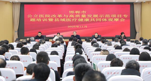为扎实推进全市公立医院改革与高质量发展示范项目顺利实施,11月27日至28日,市卫生健康委在大名县举办公立医院改革与高质量发展示范项目专题培训班暨县域医疗健康共同体现场观摩会。市政府办公室二级调研员张建东,市卫生健康委党组书记李之杰、主任李小静,市医保局局长王海文等参加并讲话。