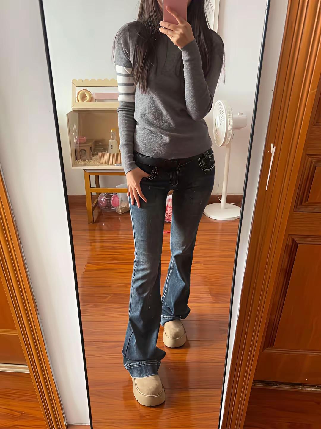 太太太韩啦! 穿搭 微喇裤 显高穿搭 牛仔裤