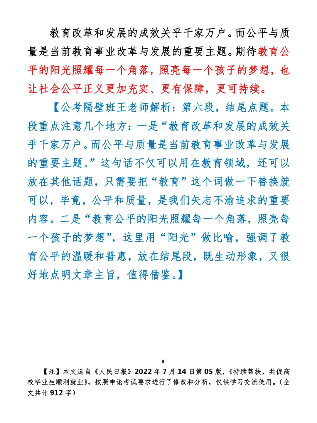 关于文章:抄写文章来源于人民日报,但每篇文章我都根据申论考试要求进行了修改,主要集中在四个方面:一是重写或修改开头、结尾;二是统一段首句句式结构;三是调整段落字数,使文章结构更均衡;四是简化复杂长难句,使之更具可模仿性。每篇文章修改幅度不同,无论修改多少,都是基于申论考试要求,毫无对人民日报文章品评之意。(此处致敬人民日报)