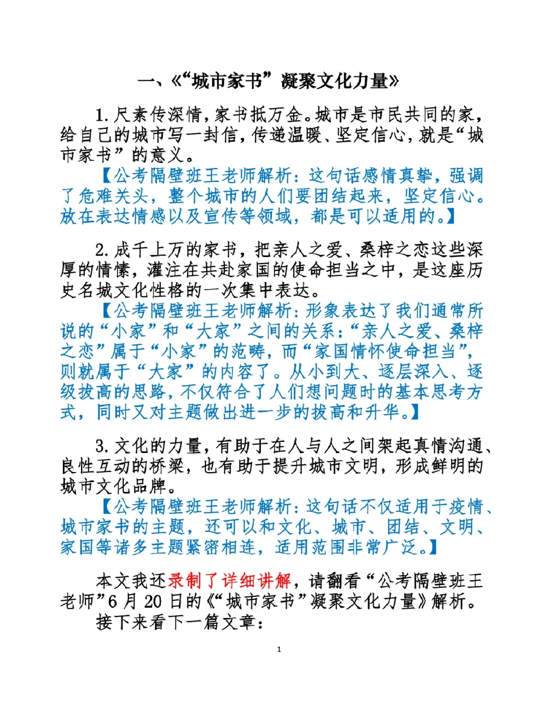 1.《“城市家书”凝聚文化力量》(6.20日,周一)
