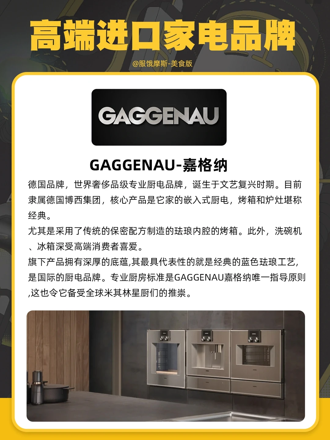 德国品牌,世界顶级的奢侈品级专业厨电品牌,诞生于文艺复兴时期。目前隶属德国博西集团,核心产品是它家的嵌入式厨电,烤箱和炉灶堪称经典。