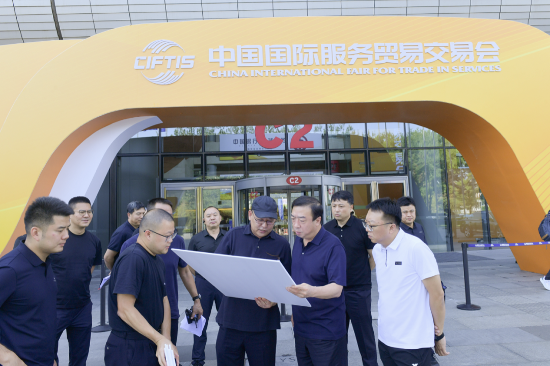 董亦军(右四)在2023年中国国际服务贸易交易会,对交通服务保障工作进行现场踏勘。
