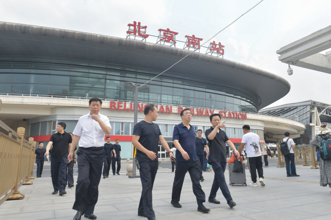 董亦军(前排右二)在北京南站进行实地踏勘调研。