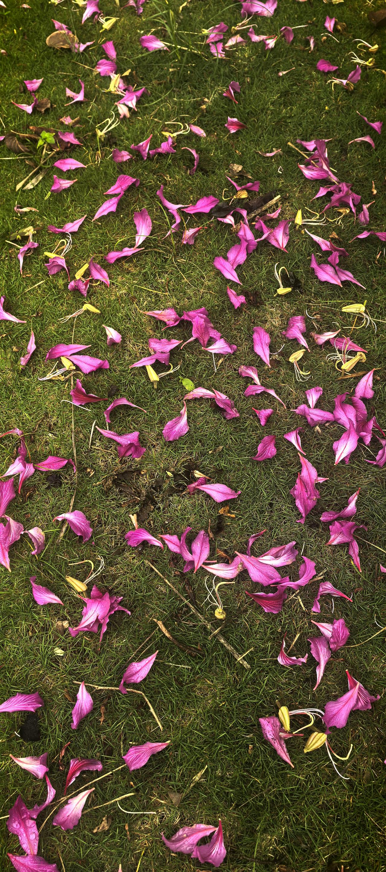 满树缤纷放紫英,嫣香逸艳最关情。 为何不禁清风落,让我凄然驻足惊。